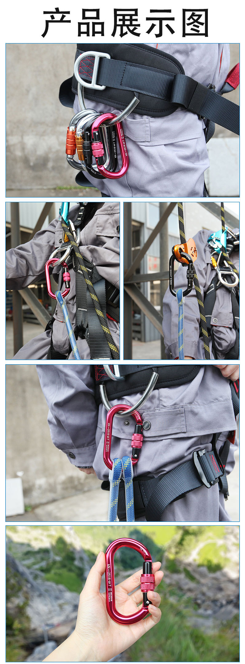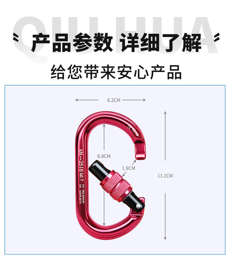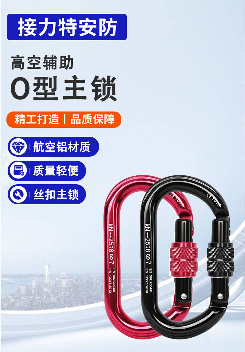 암벽 등반 및 등산 O 자형 나사 잠금 알루미늄 합금 O 형 D 형 메인 잠금 야외 공중 작업 등산 버클 너트 잠금