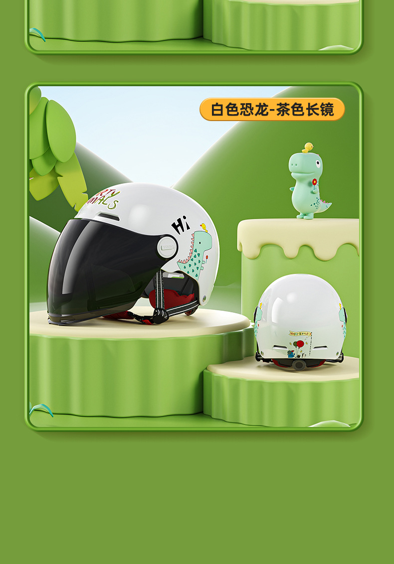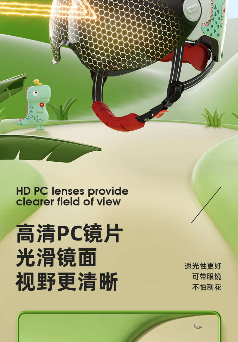 • 유백색 공룡(고화질 장거울) + 탈부착 가능한 귀 보호대(손잡이로 머리 둘레 48-55cm 조절 가능)