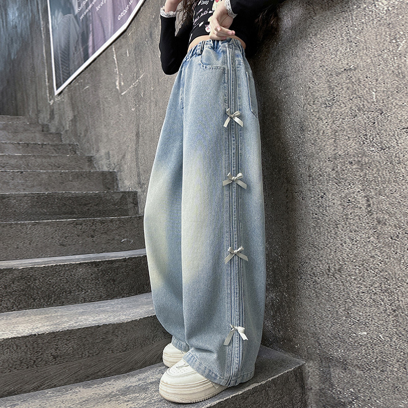여아용 데님 팬츠 가을 겨울용 두꺼운 기모 일체형 겨울용 루즈핏 여아용 와이드 팬츠 겨울용 아동 바지스토어 가기