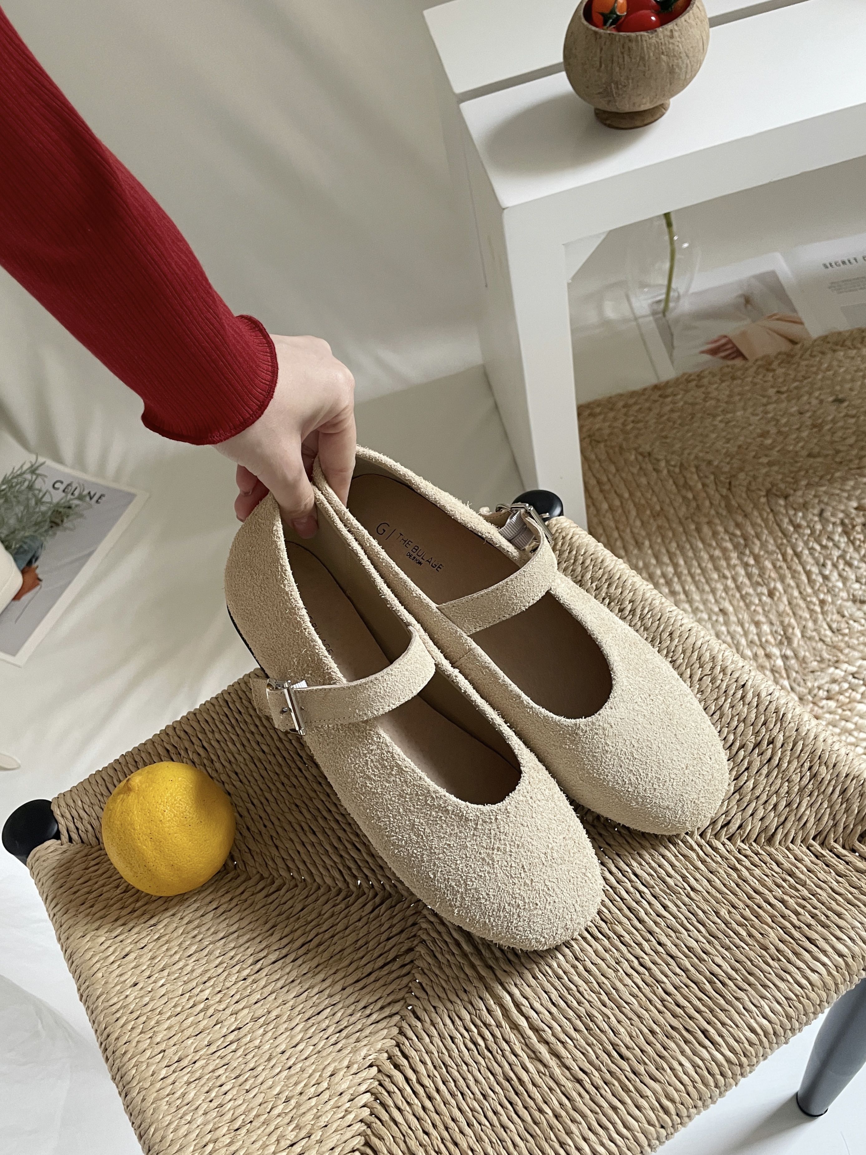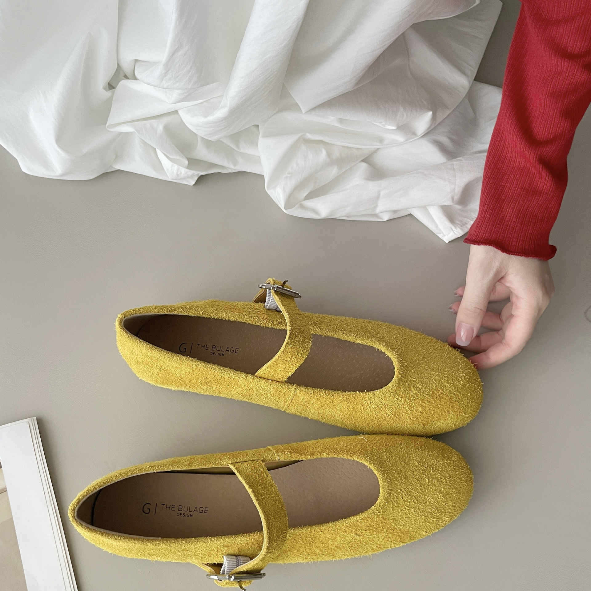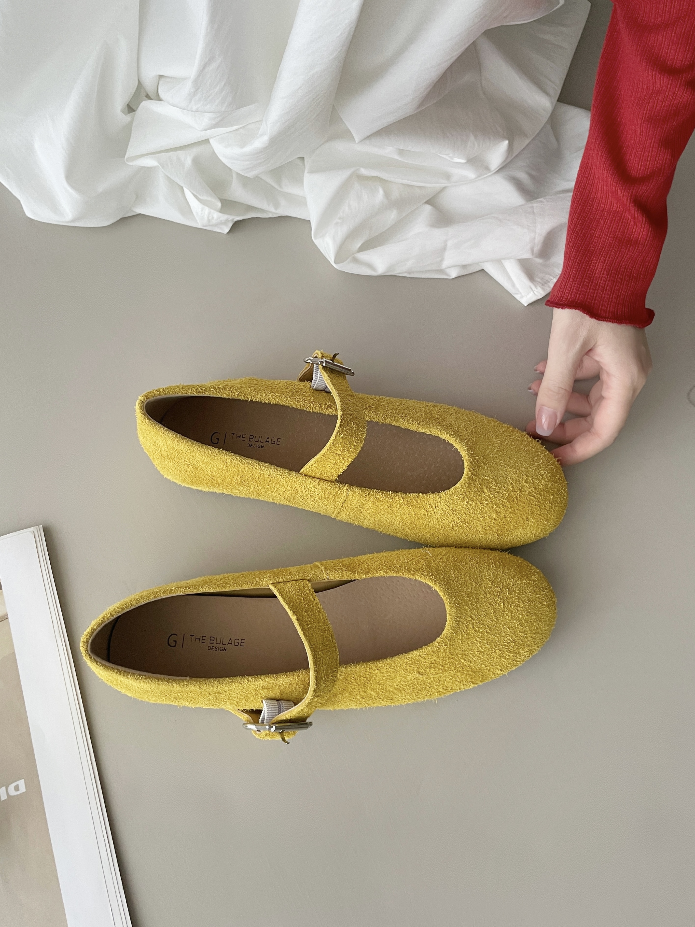 메리 제인 여성 2025 봄 새로운 스타일 한 캐릭터 버튼 캔디 컬러 정품 가죽 둥근 발가락 플랫 얕은 입 싱글 레이어 신발스토어 가기