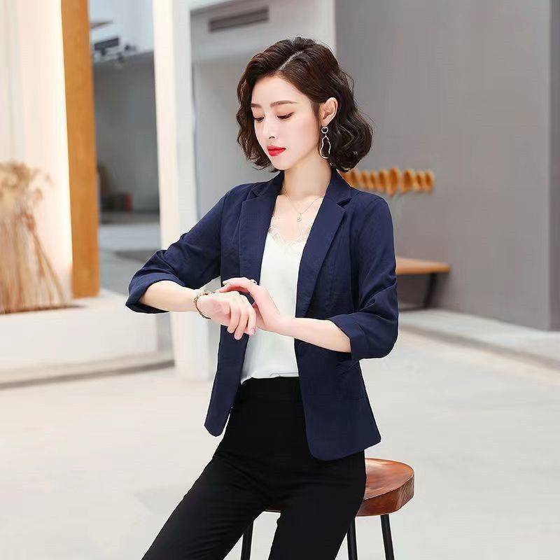 리넨 작은 세트 여성 자켓 짧은 2025 봄과 여름 새로운 슬림 핏 7 소매 선 스크린 캐주얼 작은 세트 얇은스토어 가기