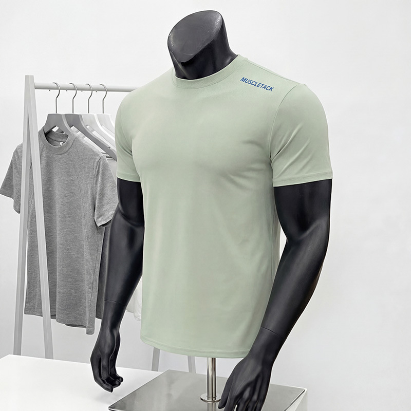 2025 근육 피트니스 형제 스포츠 남성 티셔츠 통기성 솔로나 솔리드 컬러 라운드 넥 캐주얼 러닝 짧은 소매