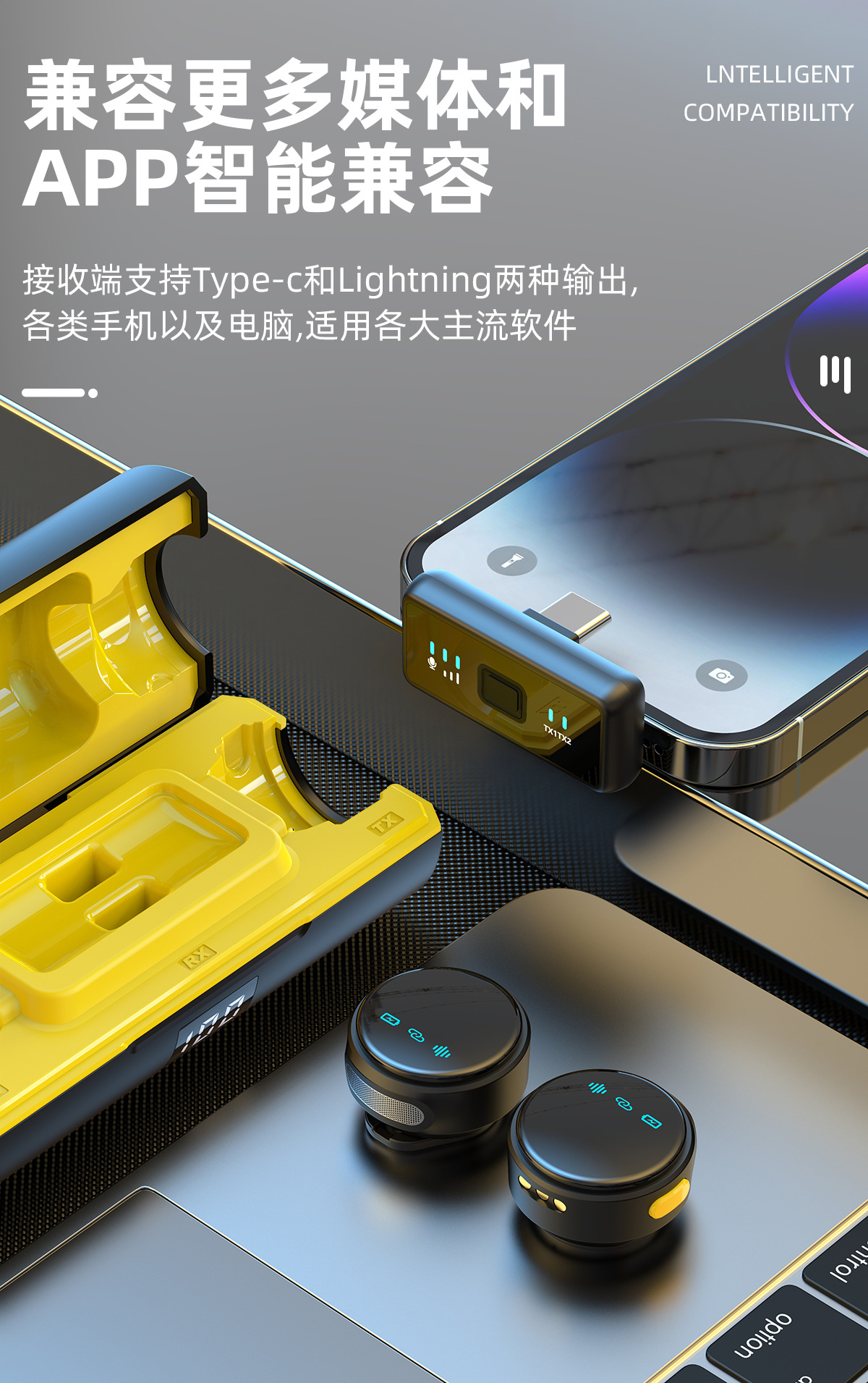 충전 빈 라이브 비디오 스마트 소음 감소 거리 미니 라이브 마이크 Q18 무선 연인 마이크