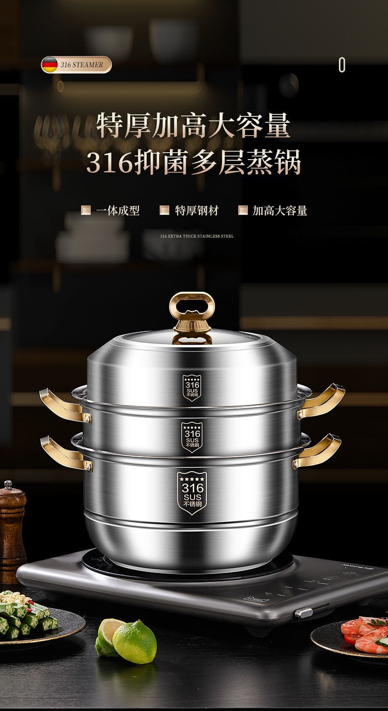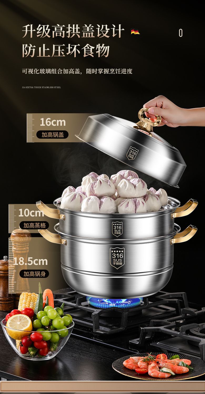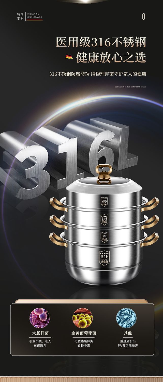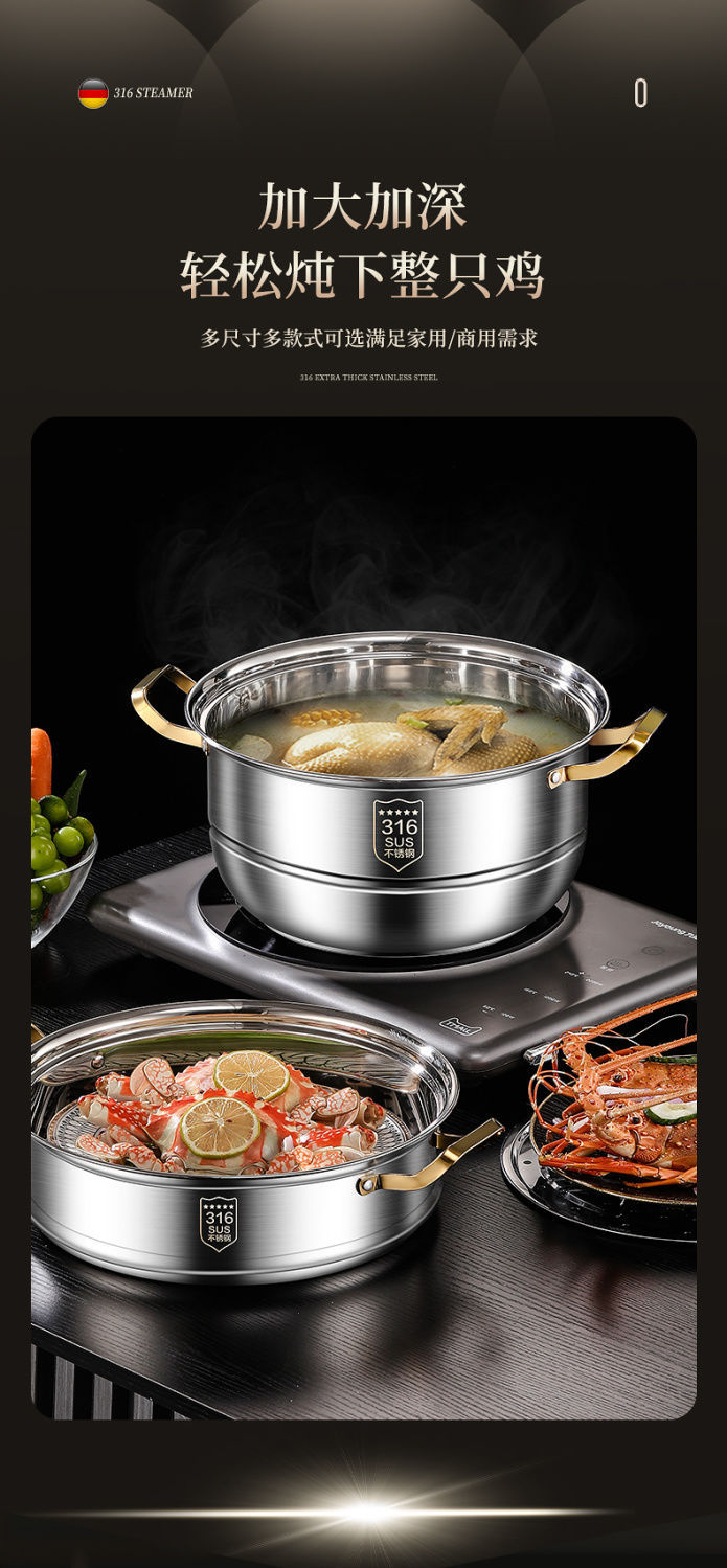 316 기선 스테인레스 스틸 식품 학년 초대형 가정용 304 수프 냄비 두꺼운 3 층 유도 쿠커 일반 도매 및 소매스토어 가기