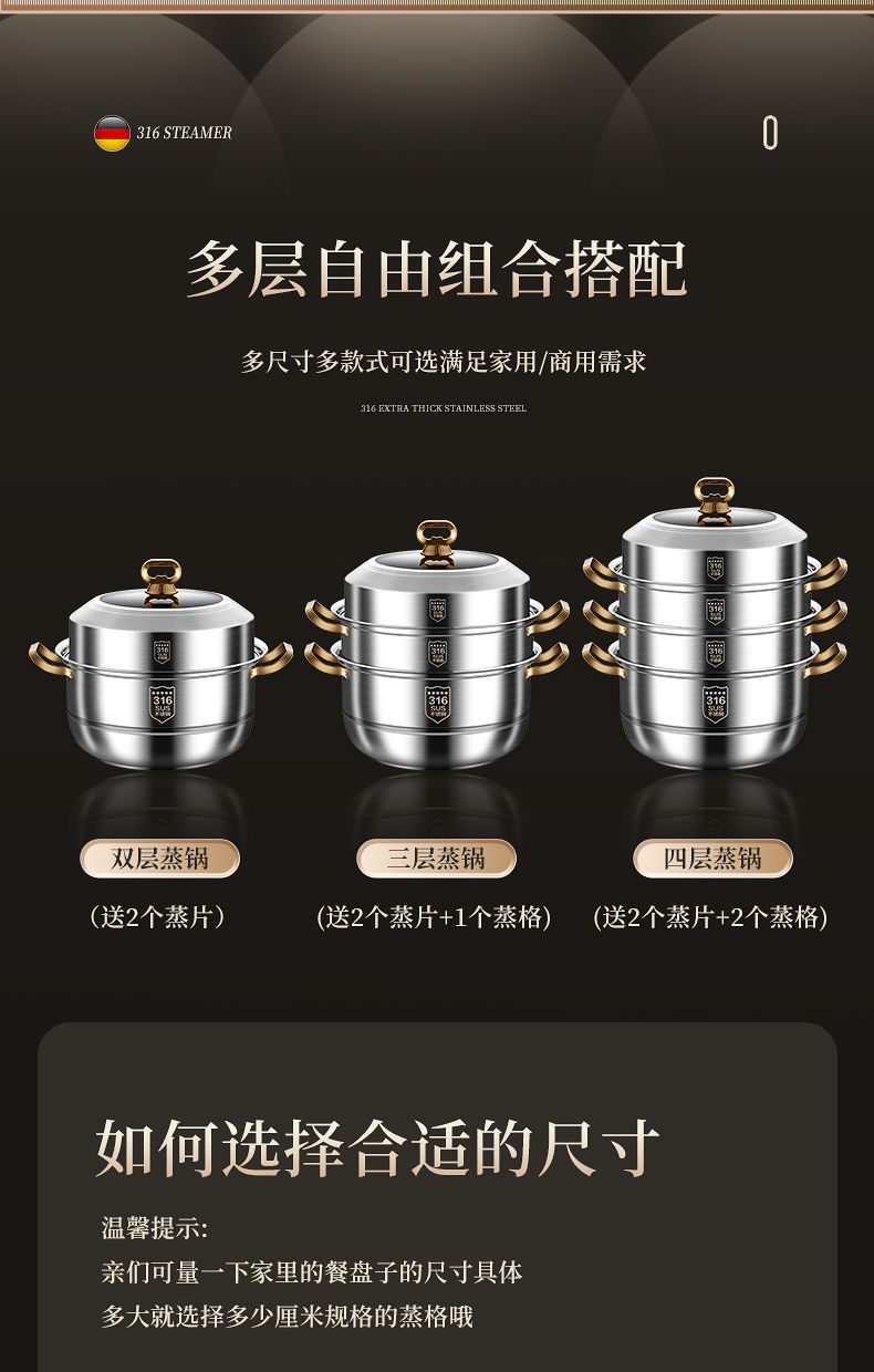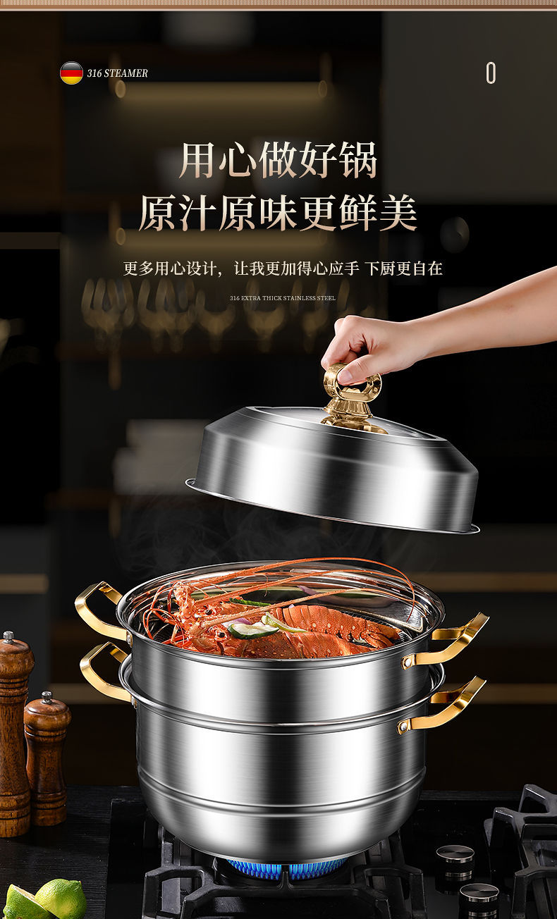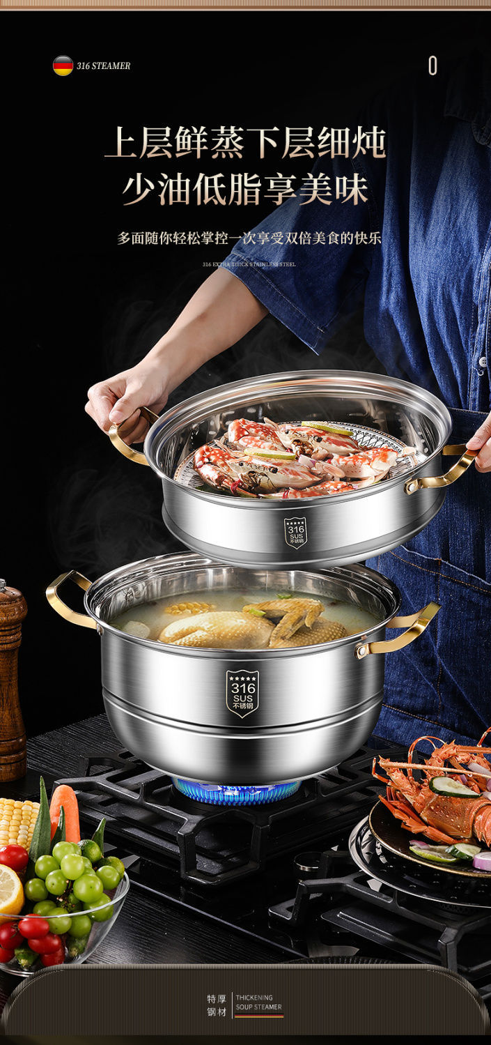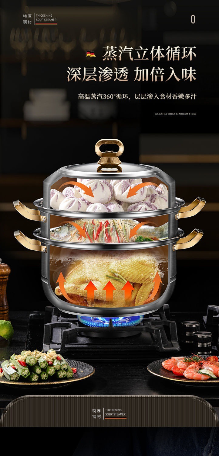 316 기선 스테인레스 스틸 식품 학년 초대형 가정용 304 수프 냄비 두꺼운 3 층 유도 쿠커 일반 도매 및 소매스토어 가기