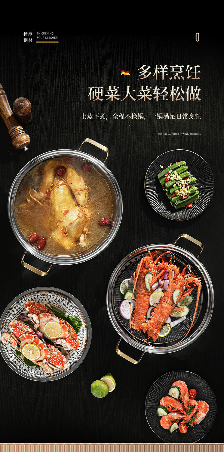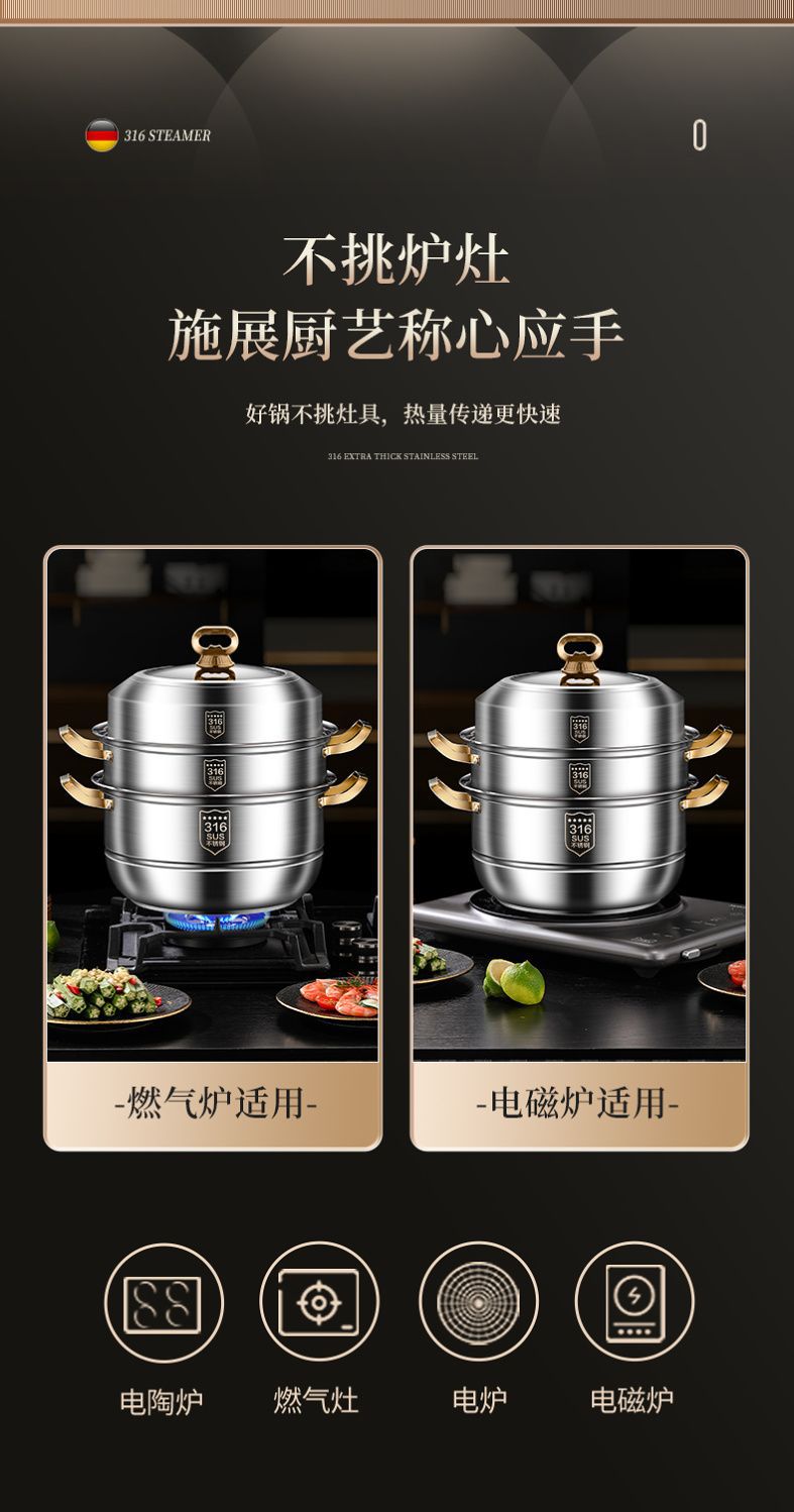 316 기선 스테인레스 스틸 식품 학년 초대형 가정용 304 수프 냄비 두꺼운 3 층 유도 쿠커 일반 도매 및 소매