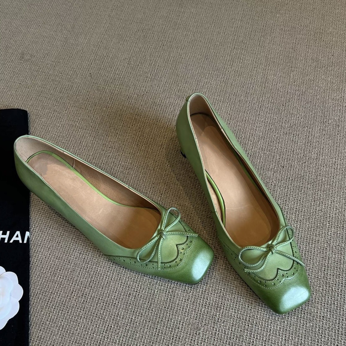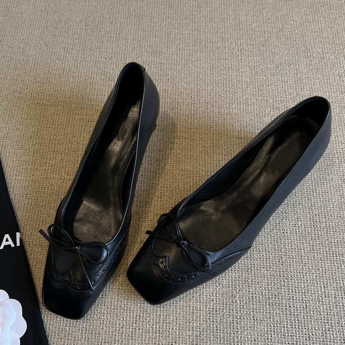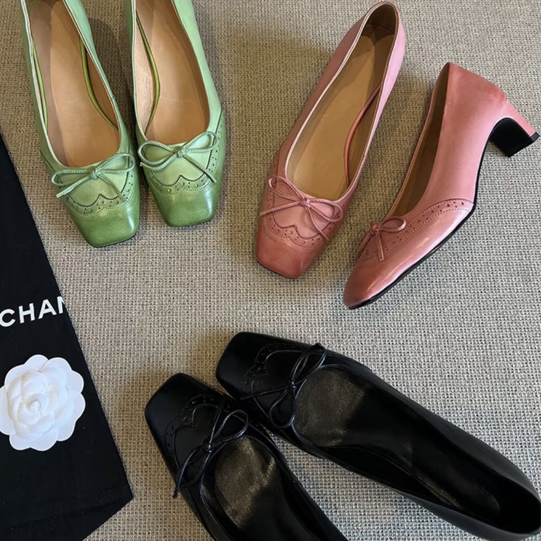 양가죽 프랑스 싱글 레이어 신발 여성 스퀘어 발가락 블랙 작업 신발 두꺼운 힐 활 아름다운 피곤하지 않은 가죽 하이힐 신발