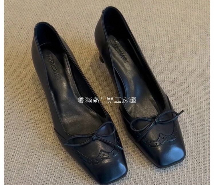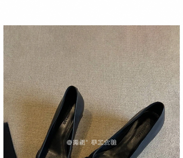 양가죽 프랑스 싱글 레이어 신발 여성 스퀘어 발가락 블랙 작업 신발 두꺼운 힐 활 아름다운 피곤하지 않은 가죽 하이힐 신발스토어 가기