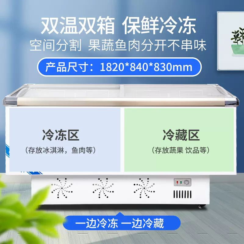 냉동고 상업용 대용량 냉동고 냉장고 냉장 디스플레이 캐비닛 신선 유지 이중 목적 섬 캐비닛 수평 유리 냉장고