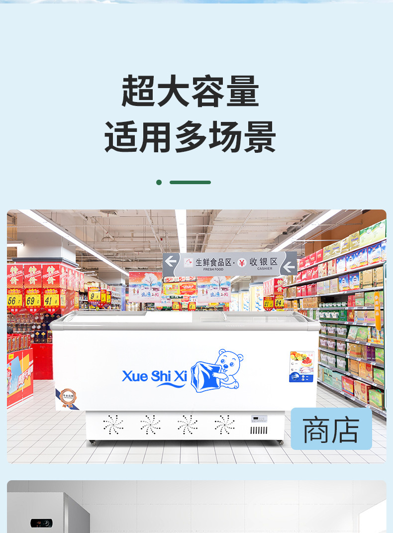 냉동고 상업용 대용량 냉동고 냉장고 냉장 디스플레이 캐비닛 신선 유지 이중 목적 섬 캐비닛 수평 유리 냉장고스토어 가기