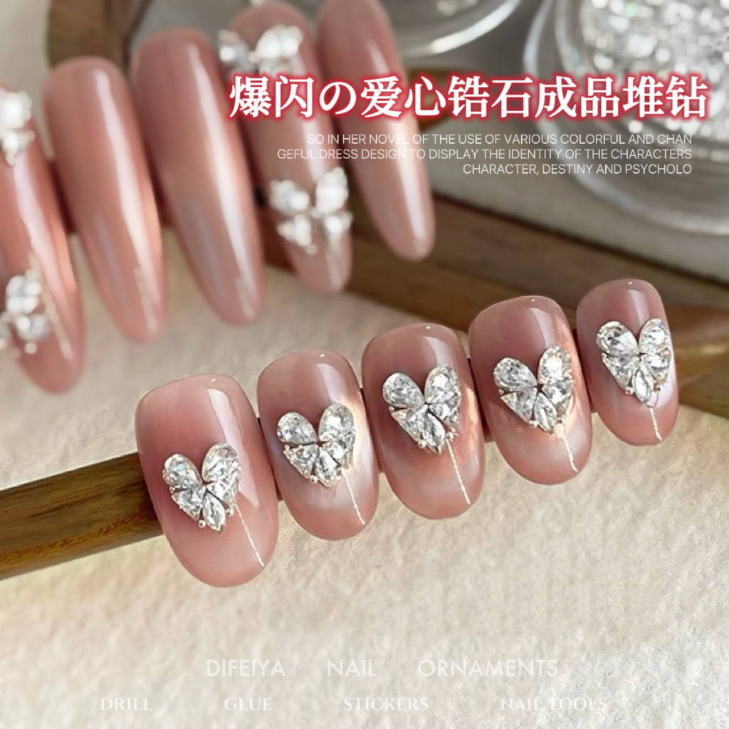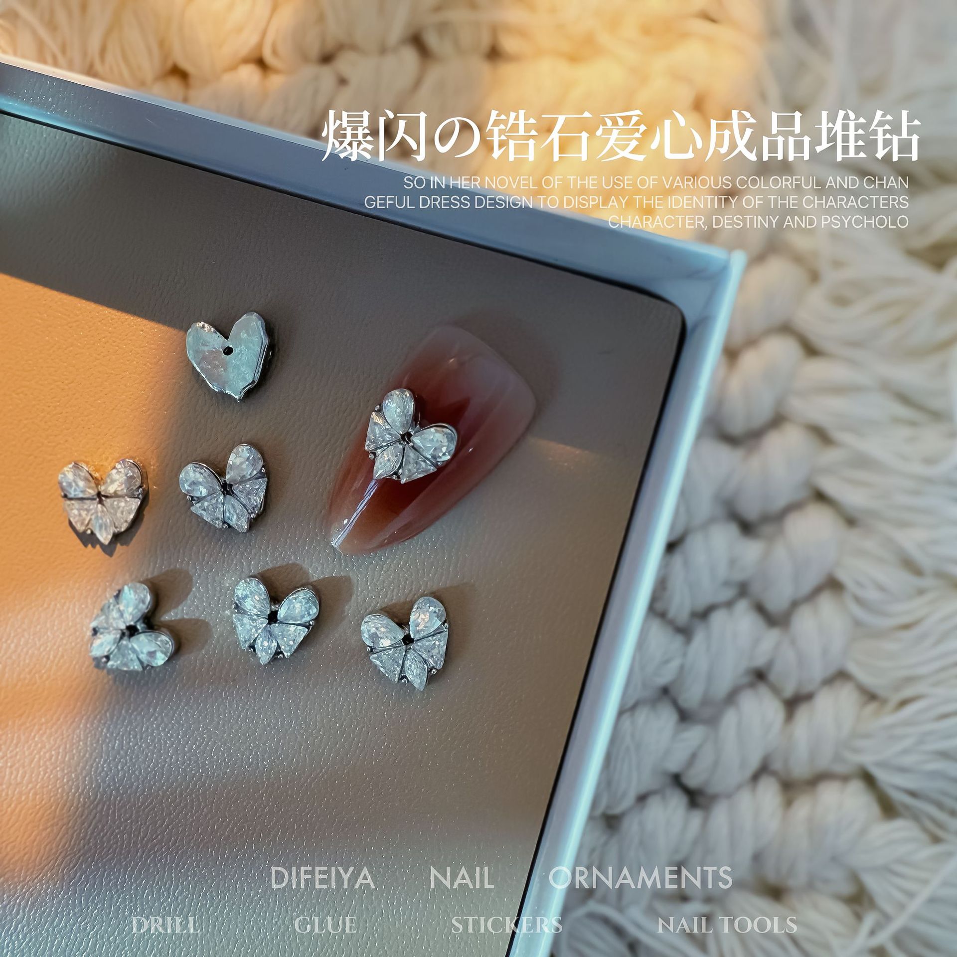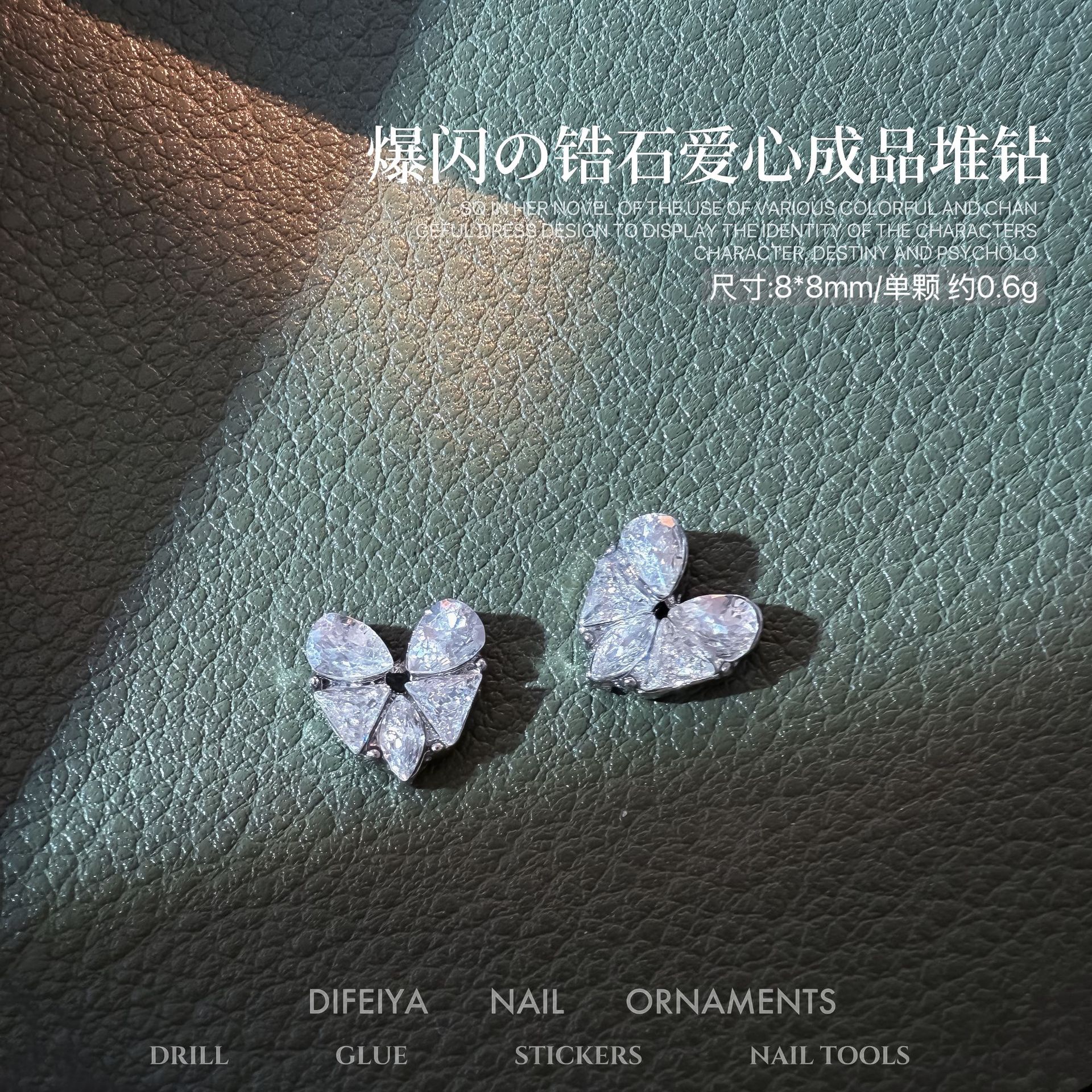 새로운 사랑 지르콘 더미 드릴 네일 쥬얼리 그물 레드 플래시 실버 흰 물방울 말 눈 완성 된 주문 드릴 네일 다이아몬드 장식품스토어 가기