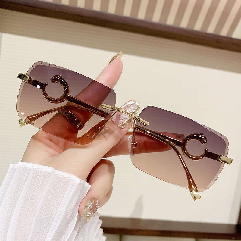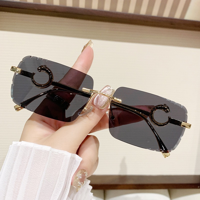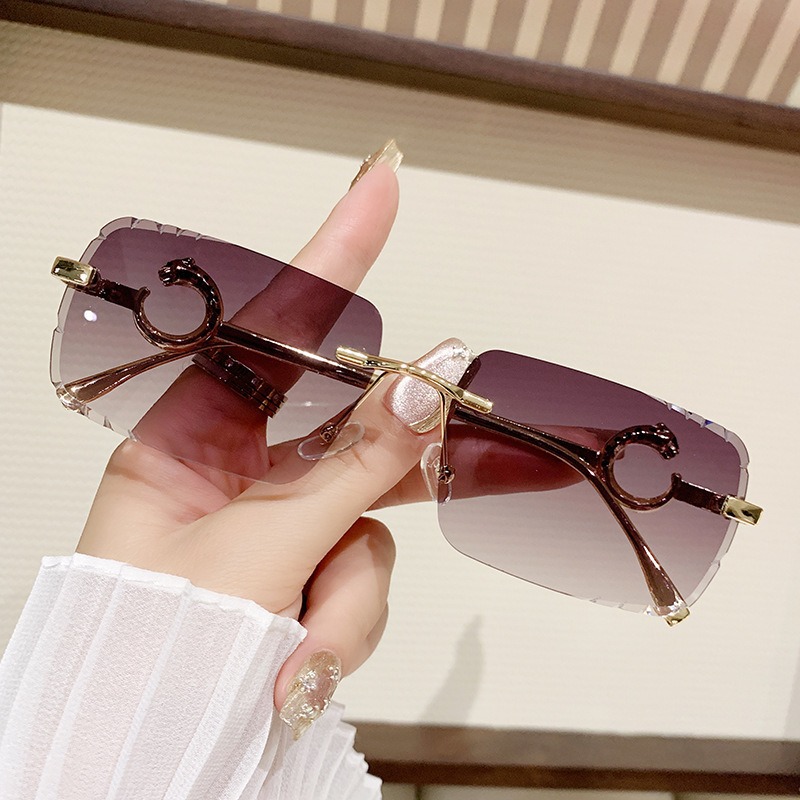 2025 국경 유행 여성 인스타그램 인터넷 인기 선글라스 고급 안티 자외선 금속 프레임리스 선글라스