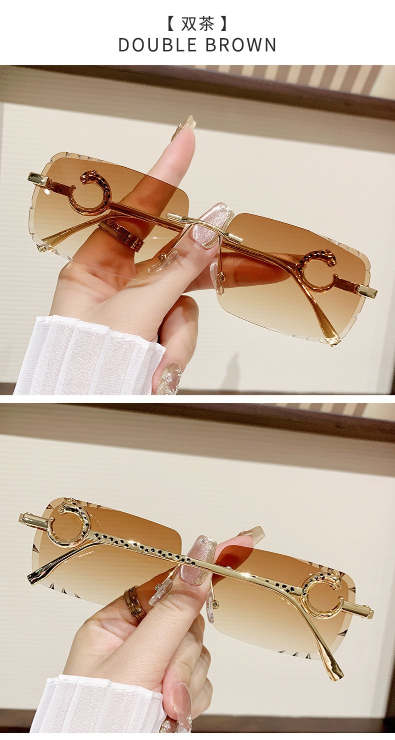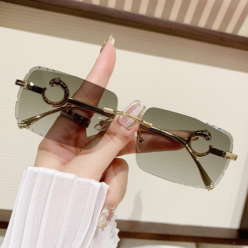 2025 국경 유행 여성 인스타그램 인터넷 인기 선글라스 고급 안티 자외선 금속 프레임리스 선글라스스토어 가기