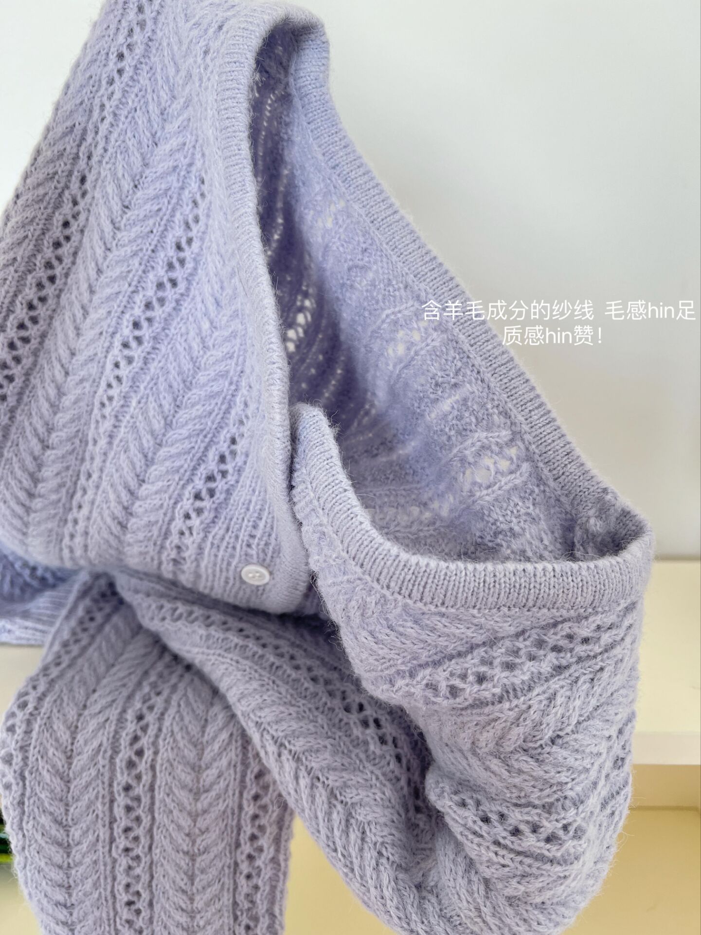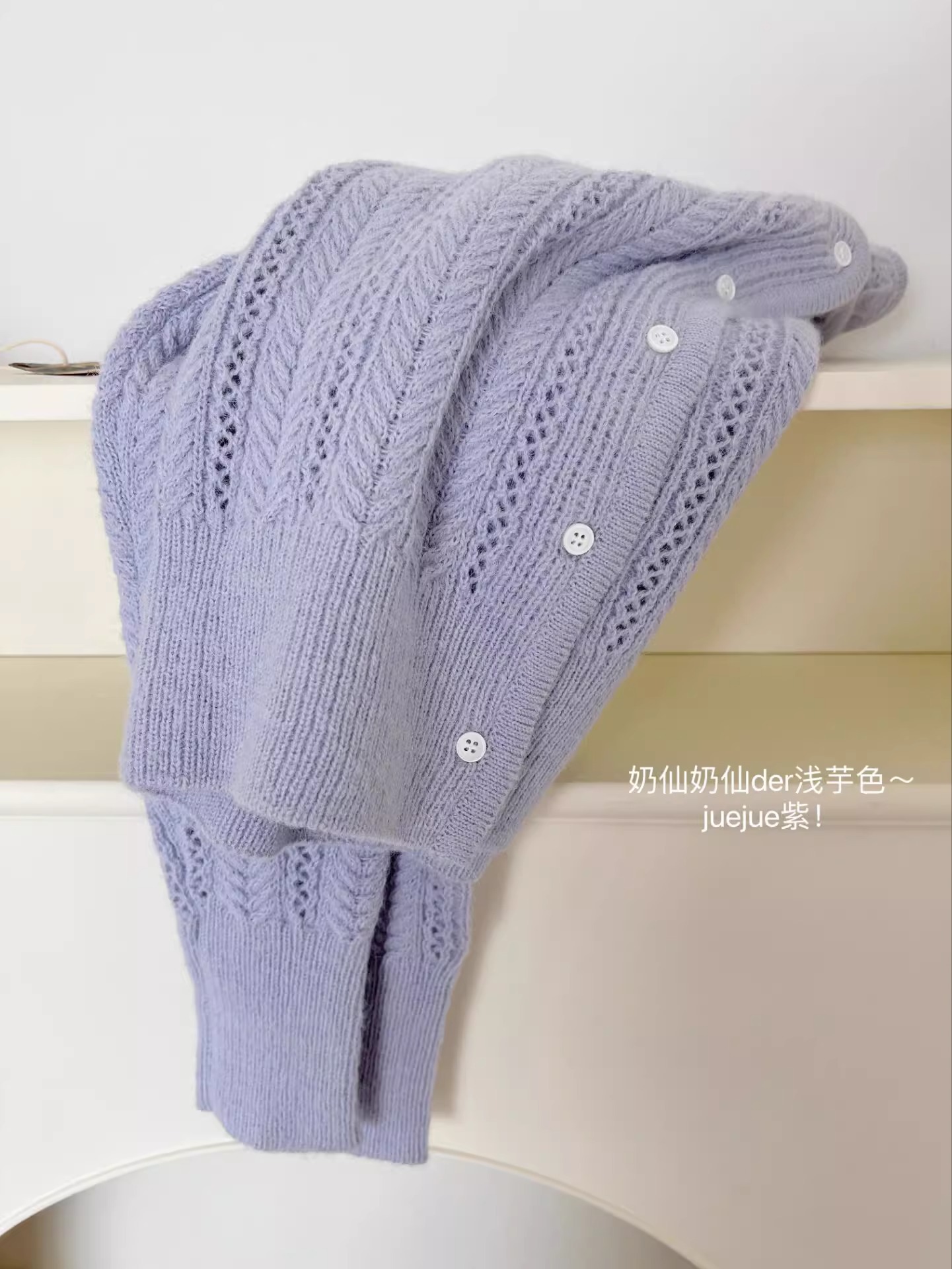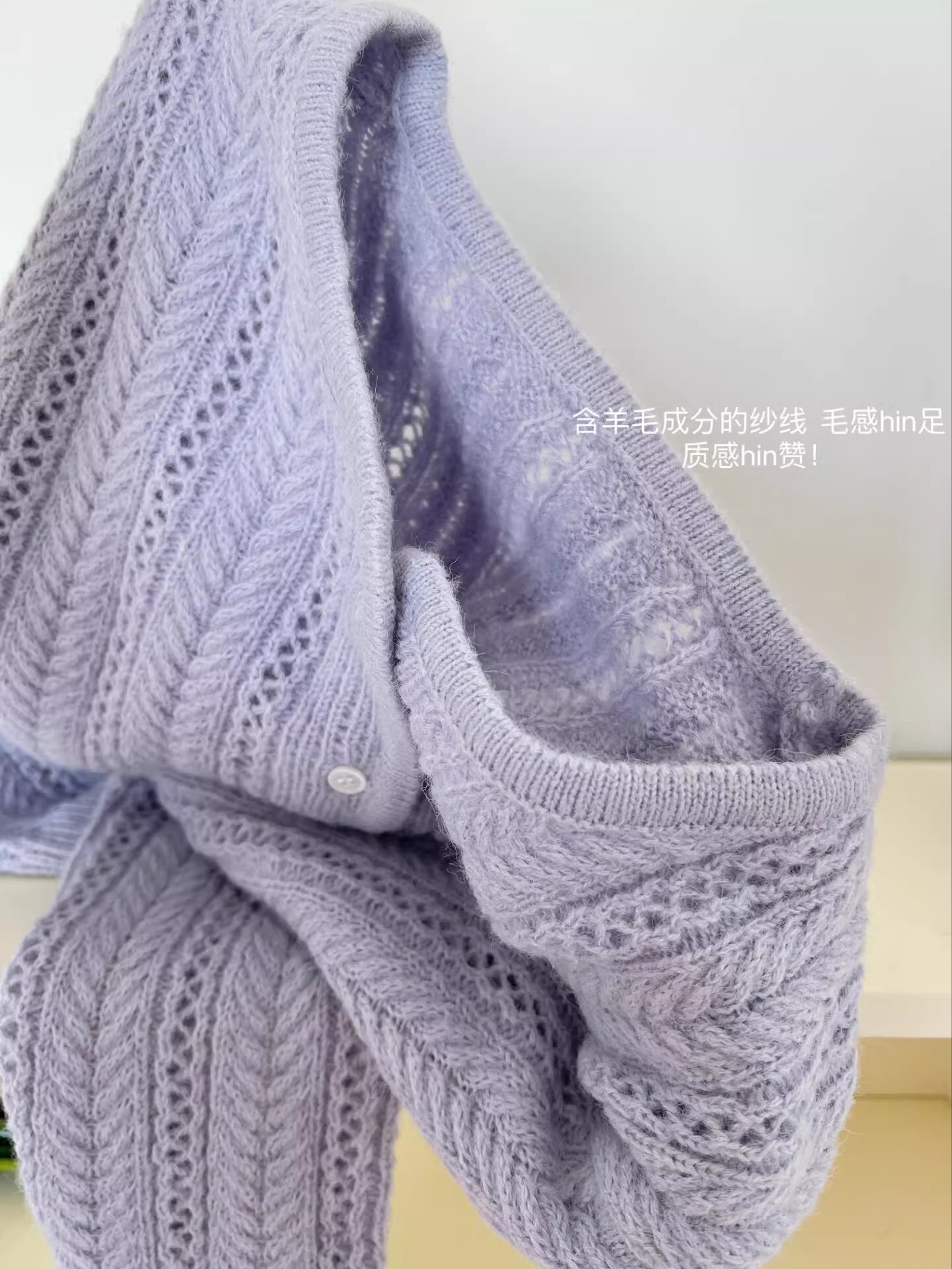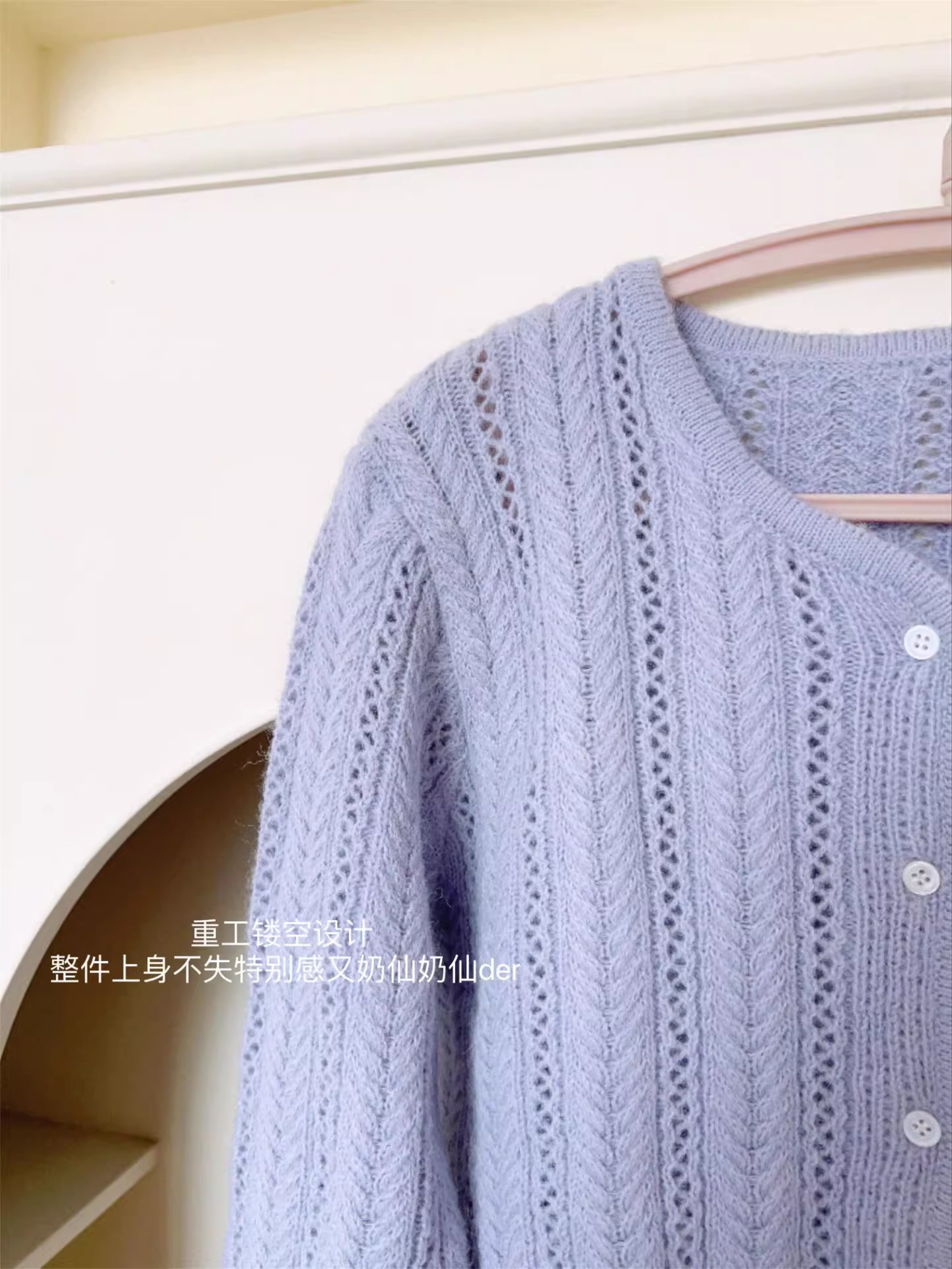 디자인 센스 할로우 퍼플 V-넥 니트 카디건 봄 여성 느슨한 슬리밍 짧은 스웨터 재킷 스몰 사이즈스토어 가기