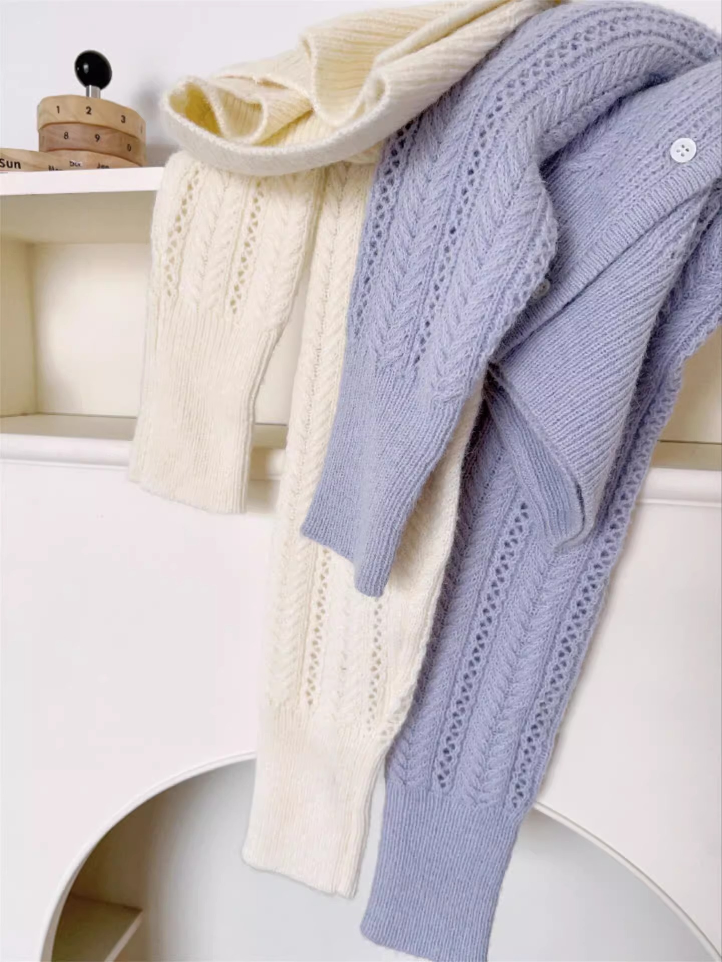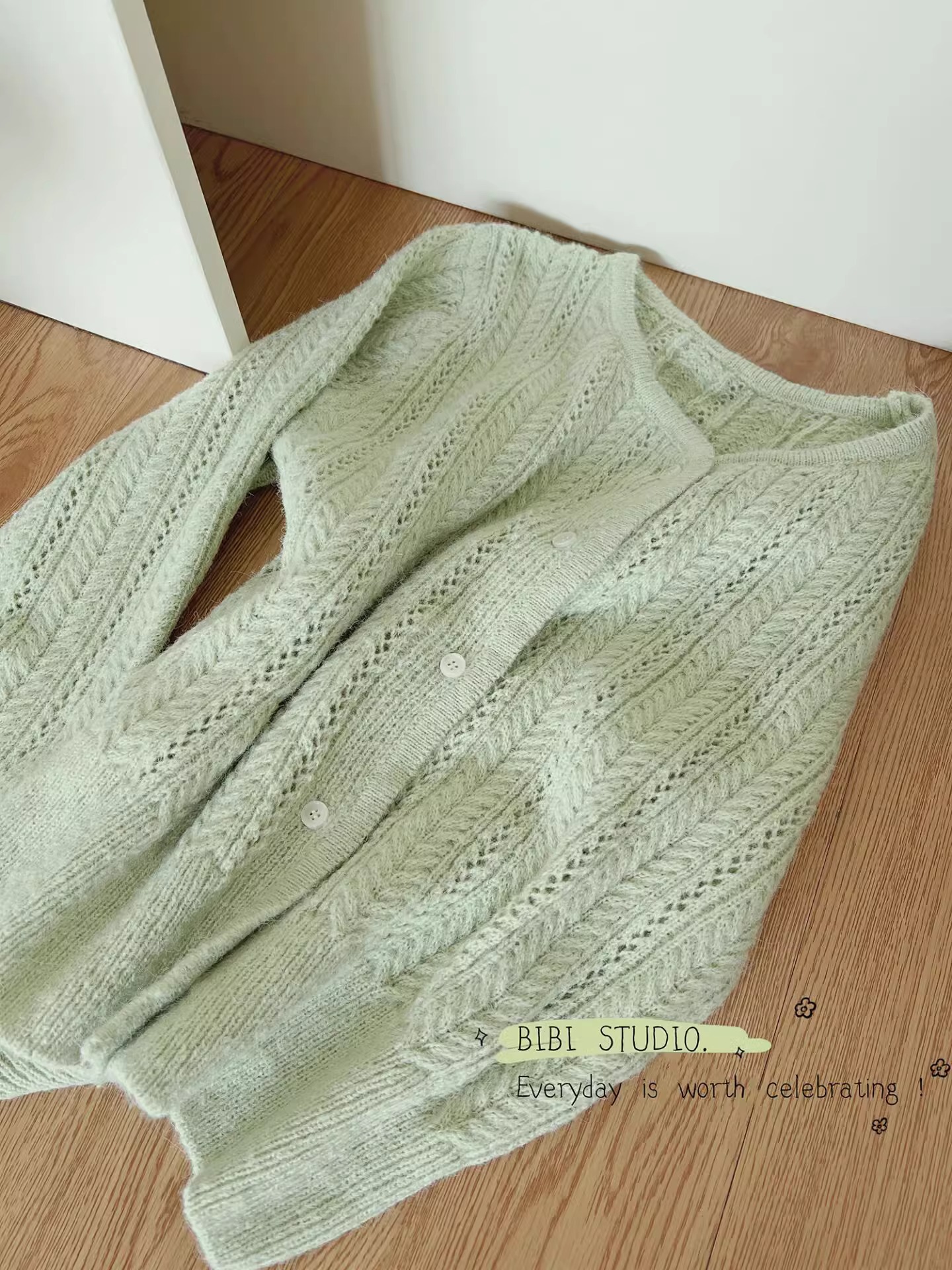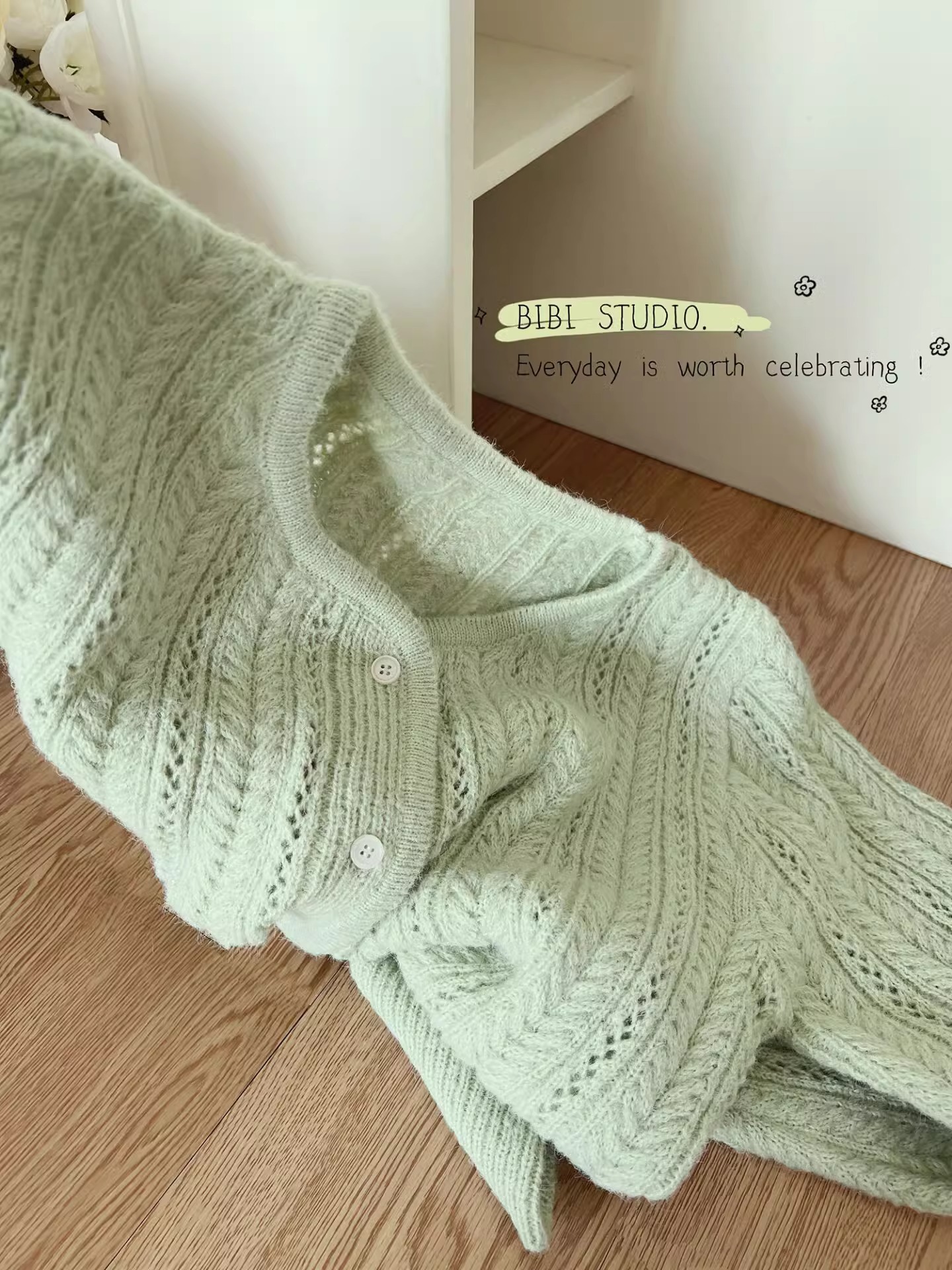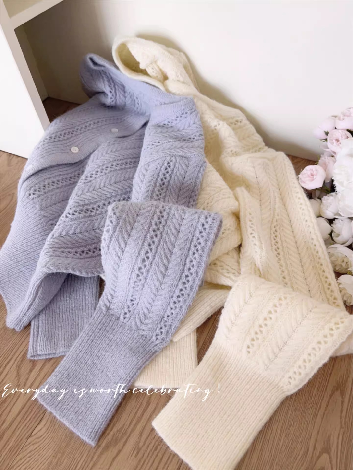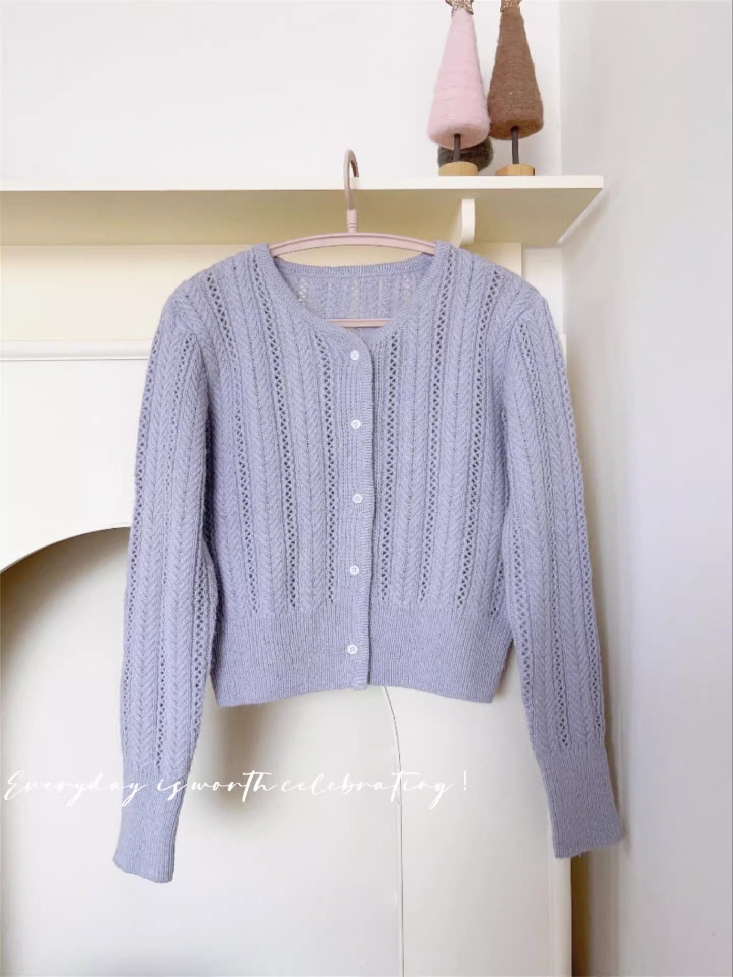 디자인 센스 할로우 퍼플 V-넥 니트 카디건 봄 여성 느슨한 슬리밍 짧은 스웨터 재킷 스몰 사이즈스토어 가기