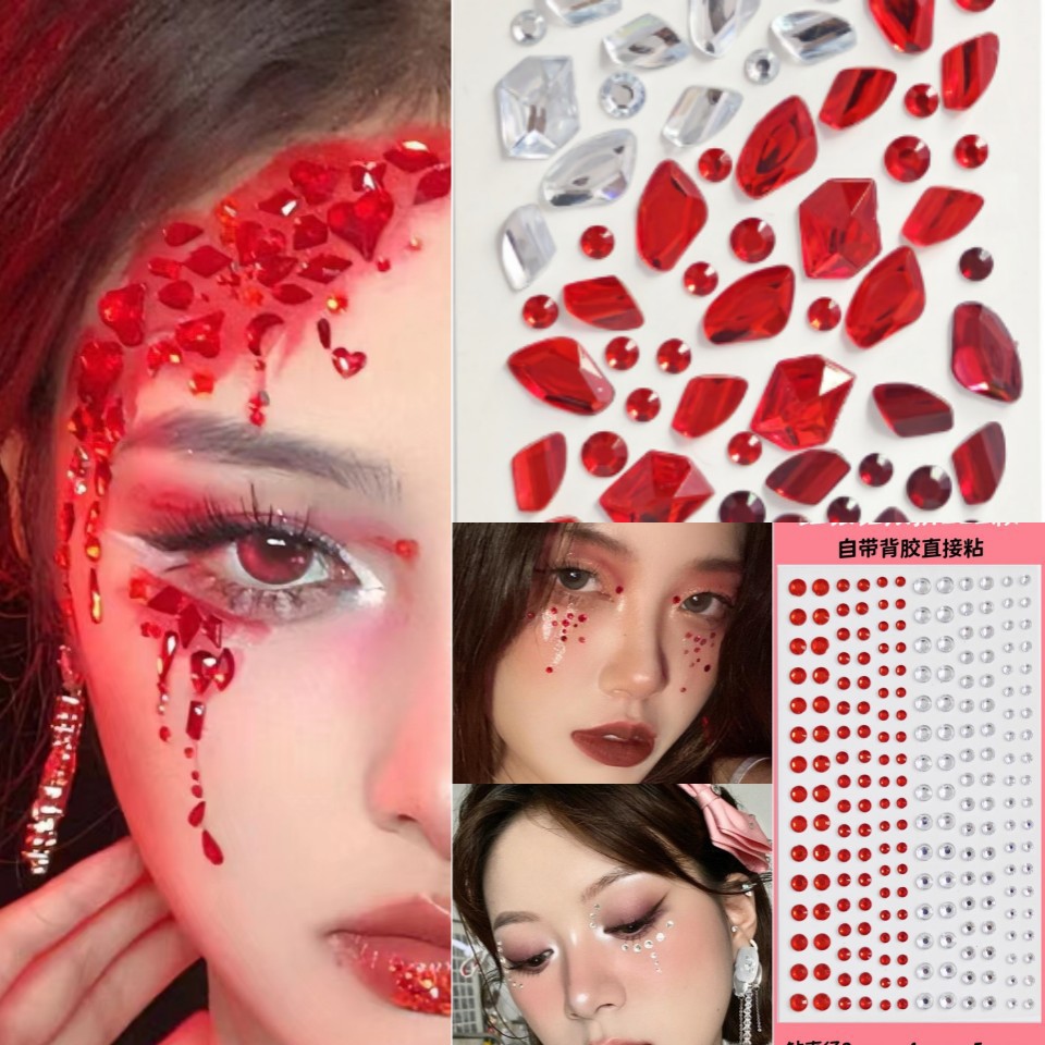 할로윈 메이크업 다이아몬드 레드 다크 시리즈 다이아몬드 블랙 스타 사랑 물방울 불규칙한 접착제 자기 접착