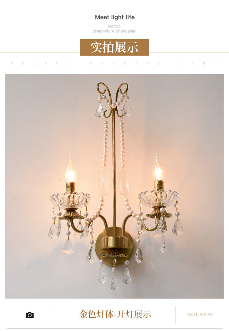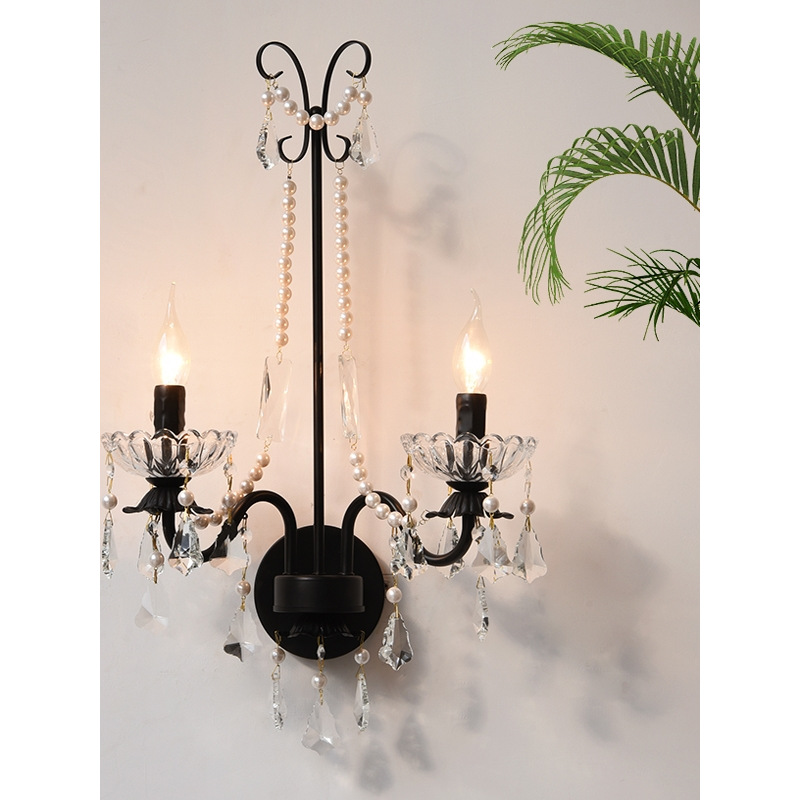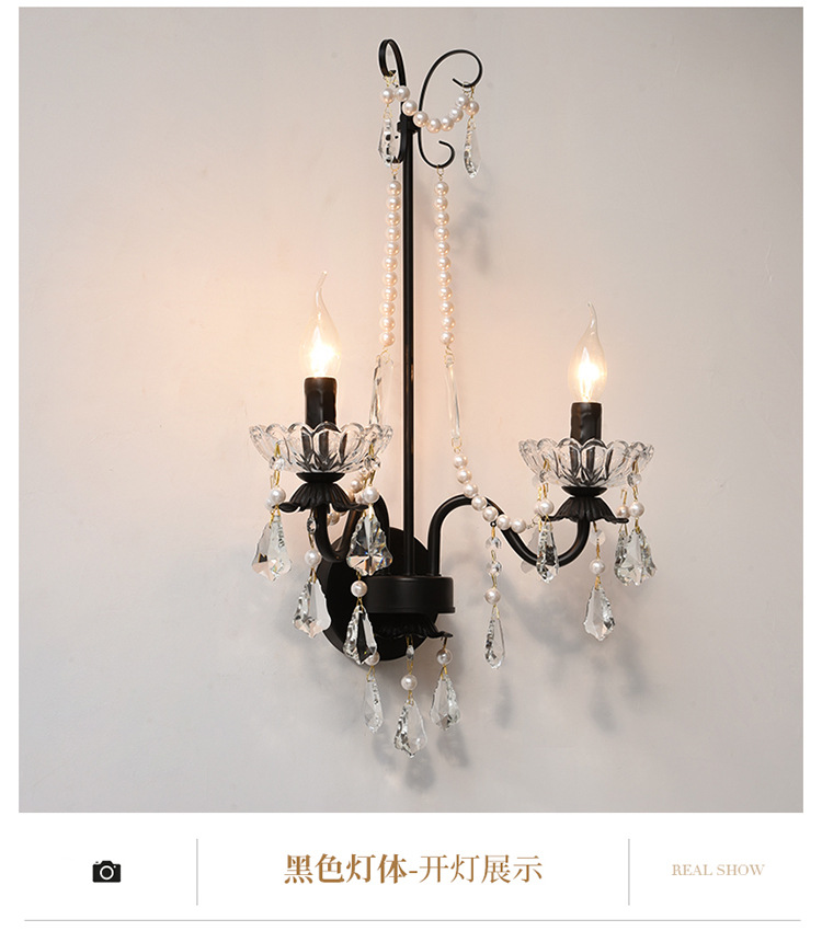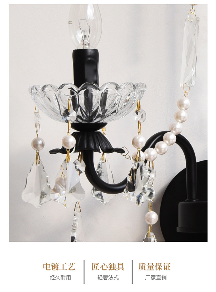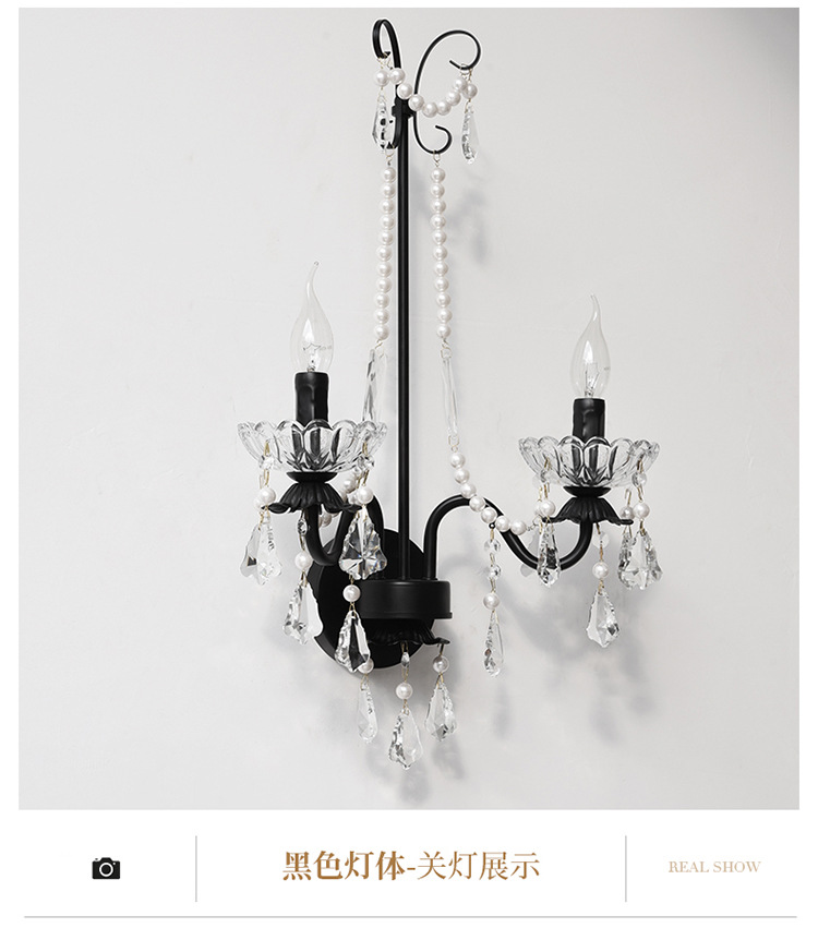 프렌치 레트로 크리스탈 벽 램프 라이트 럭셔리 침실 침실 통로 캔들 램프 블랙 계단 거실 배경 벽 램프스토어 가기