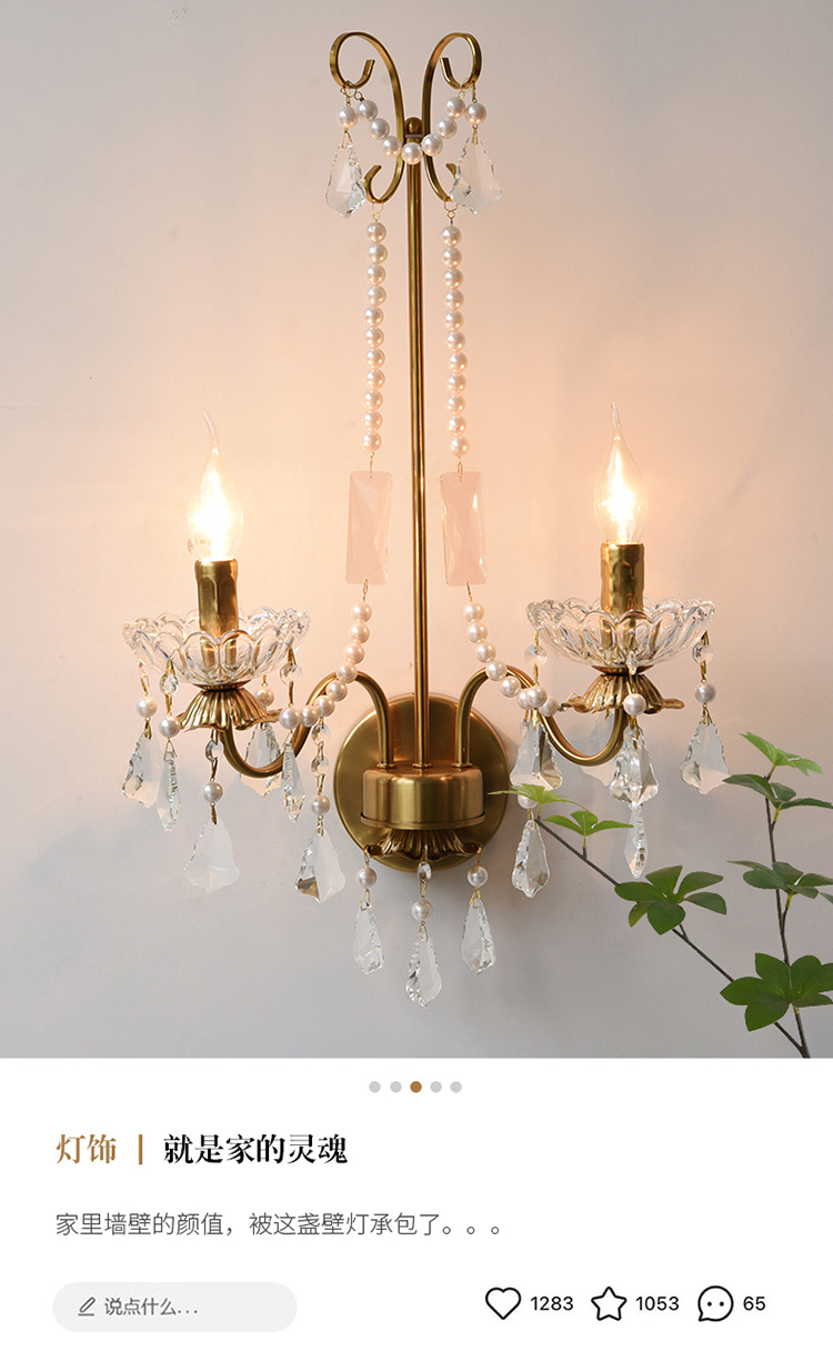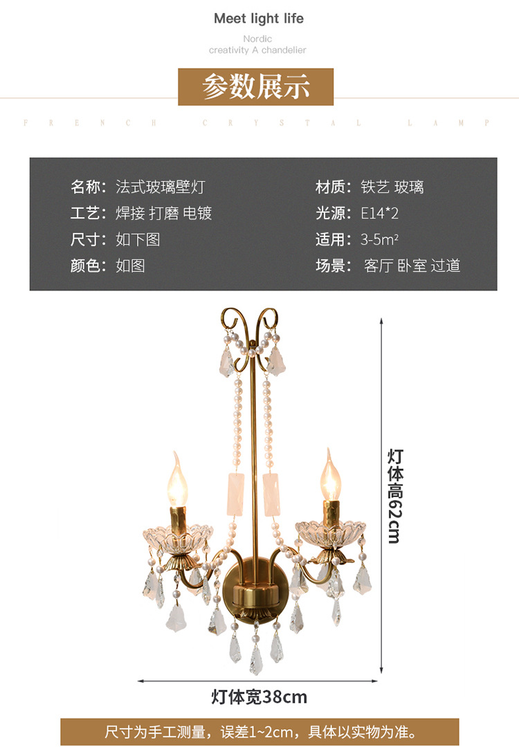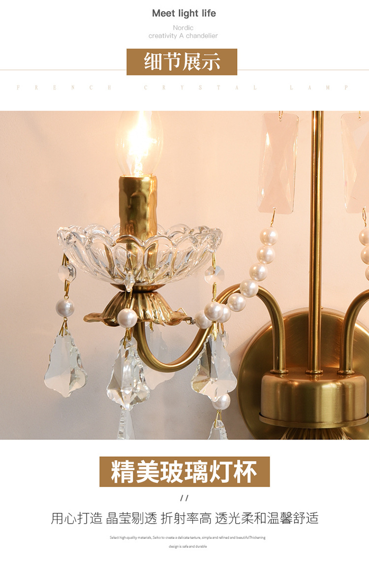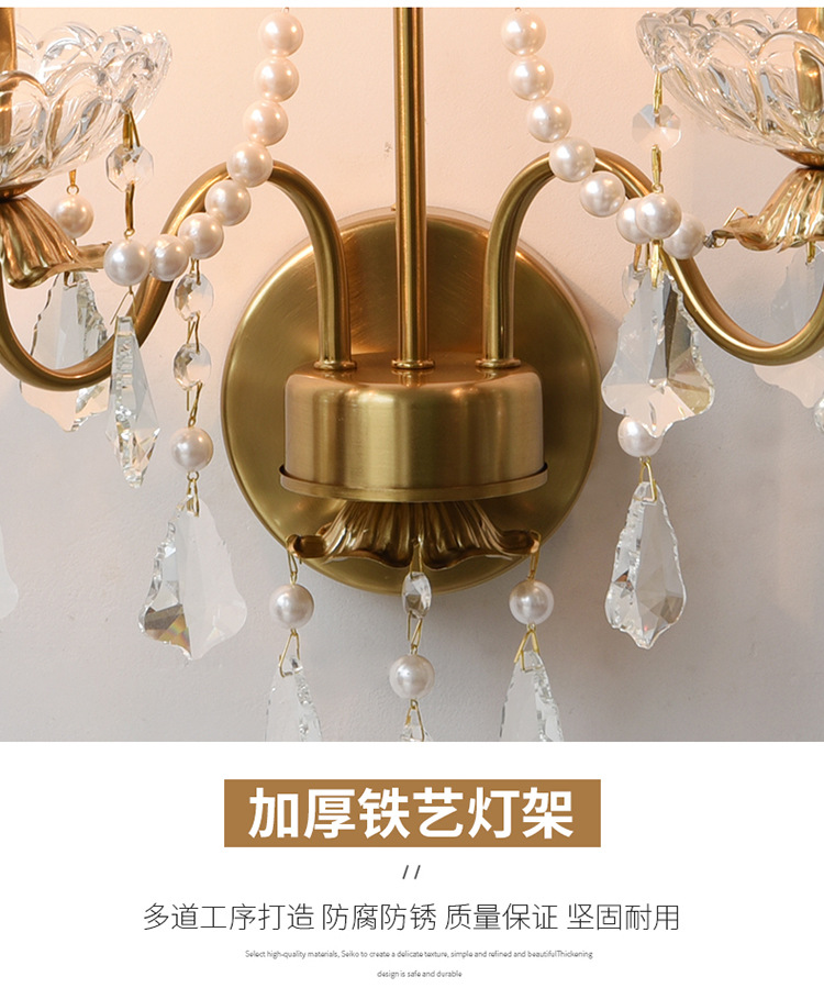 프렌치 레트로 크리스탈 벽 램프 라이트 럭셔리 침실 침실 통로 캔들 램프 블랙 계단 거실 배경 벽 램프스토어 가기
