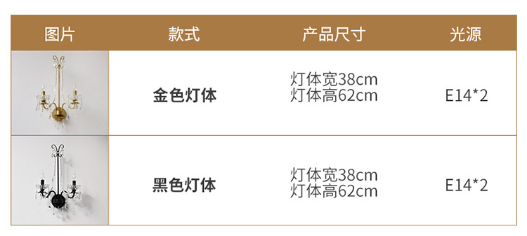 프렌치 레트로 크리스탈 벽 램프 라이트 럭셔리 침실 침실 통로 캔들 램프 블랙 계단 거실 배경 벽 램프