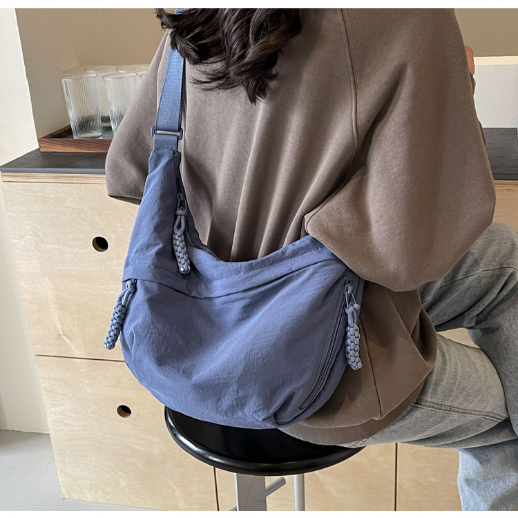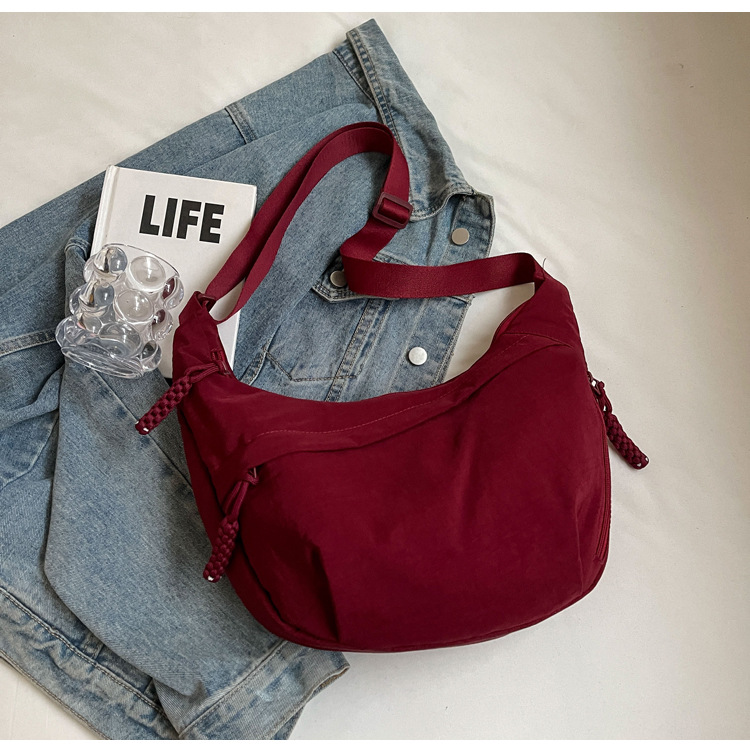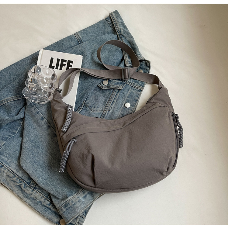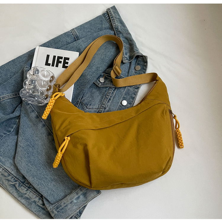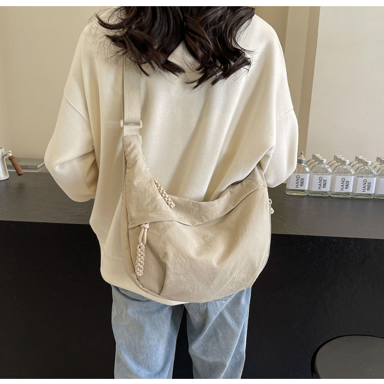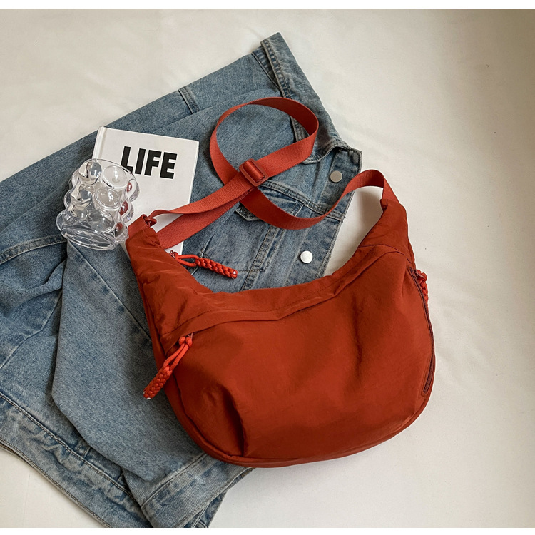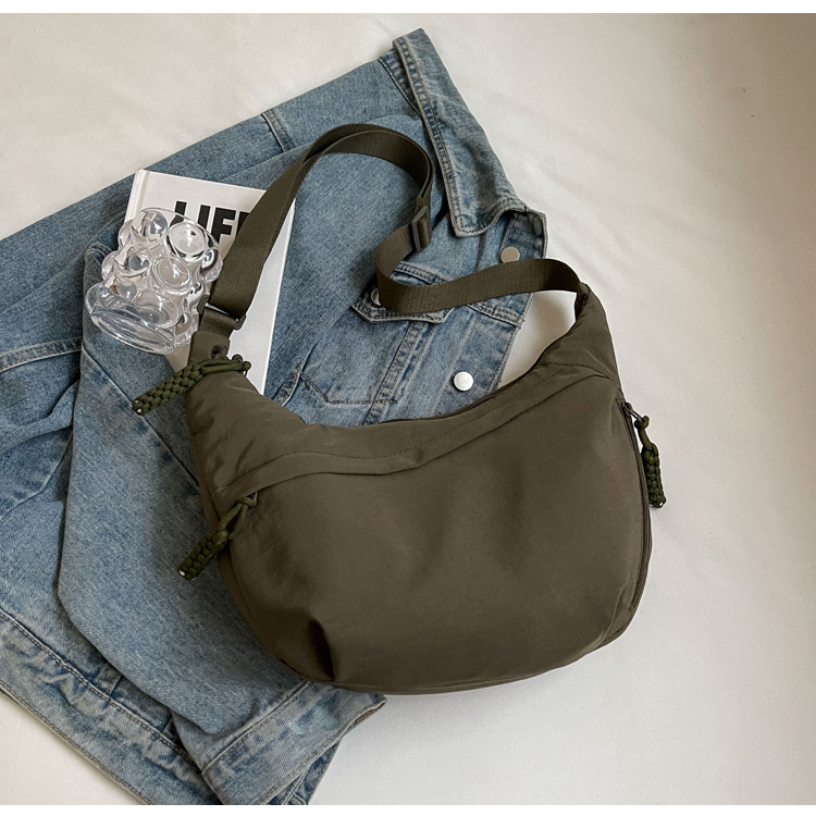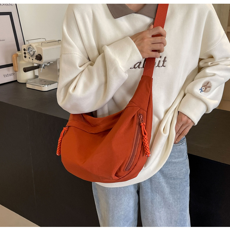 일본식 심플 여성용 크로스 바디 백 대용량 솔리드 컬러 만두 백 경량 통근 학생 클래스 숄더 백