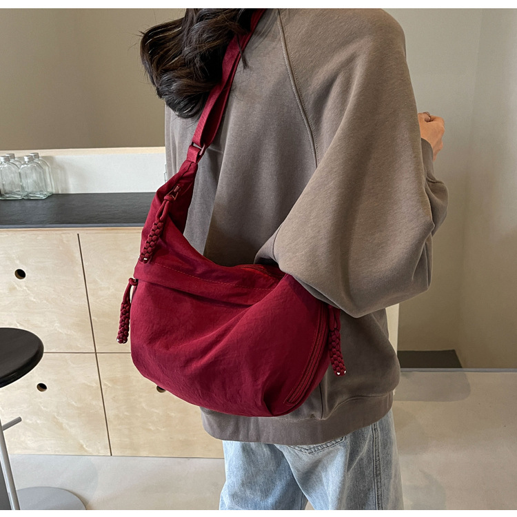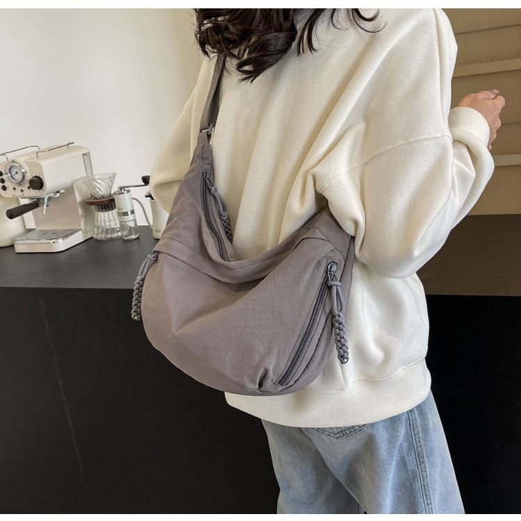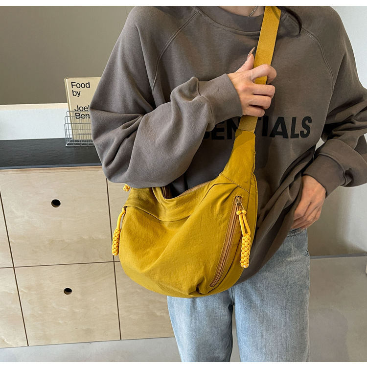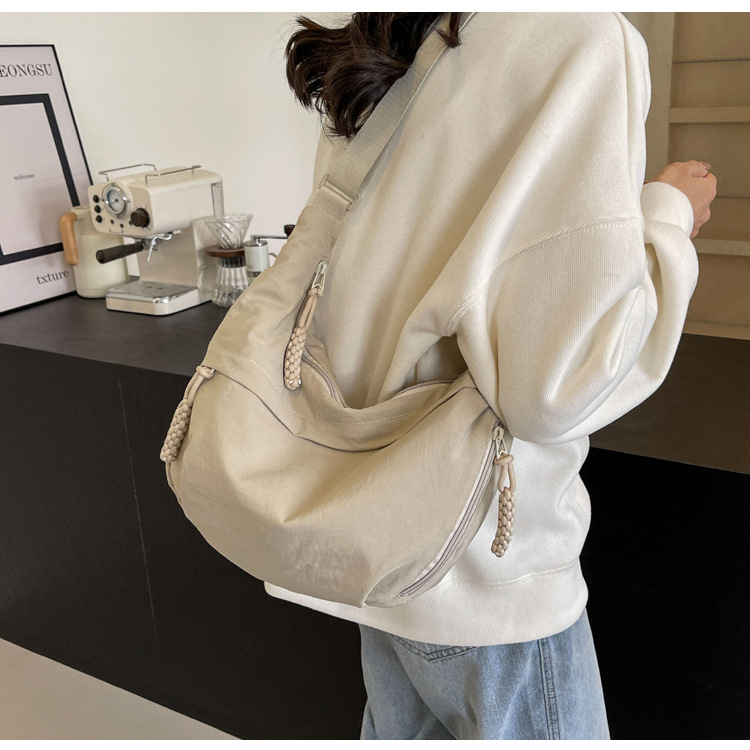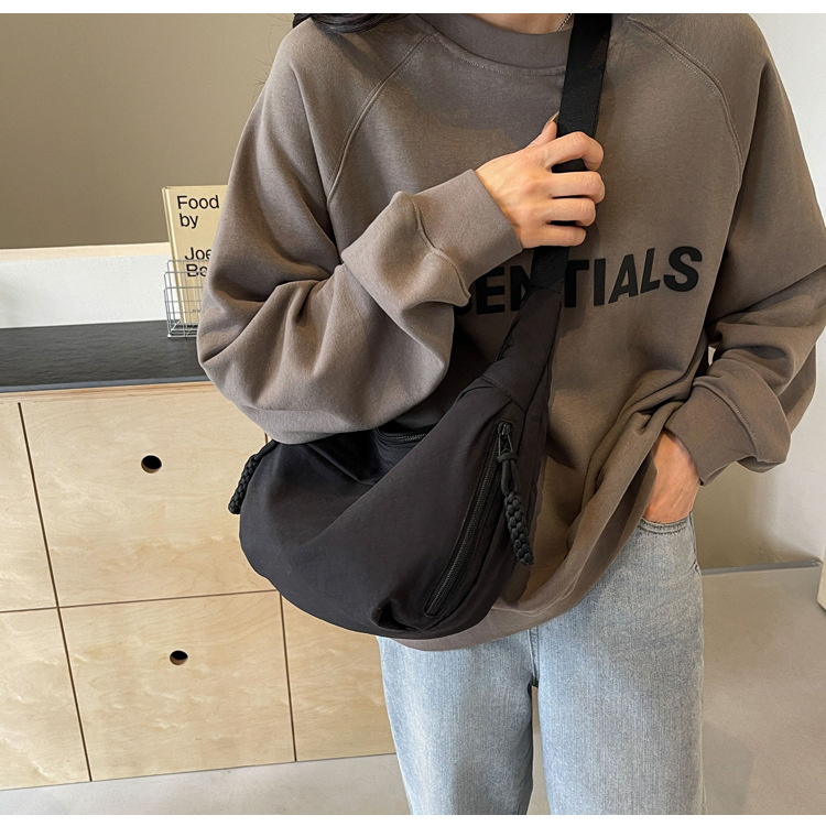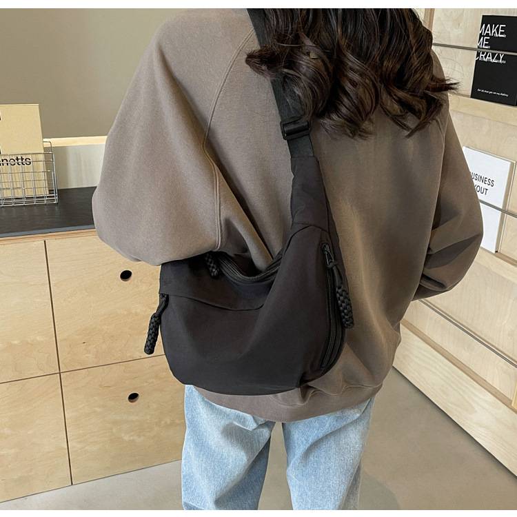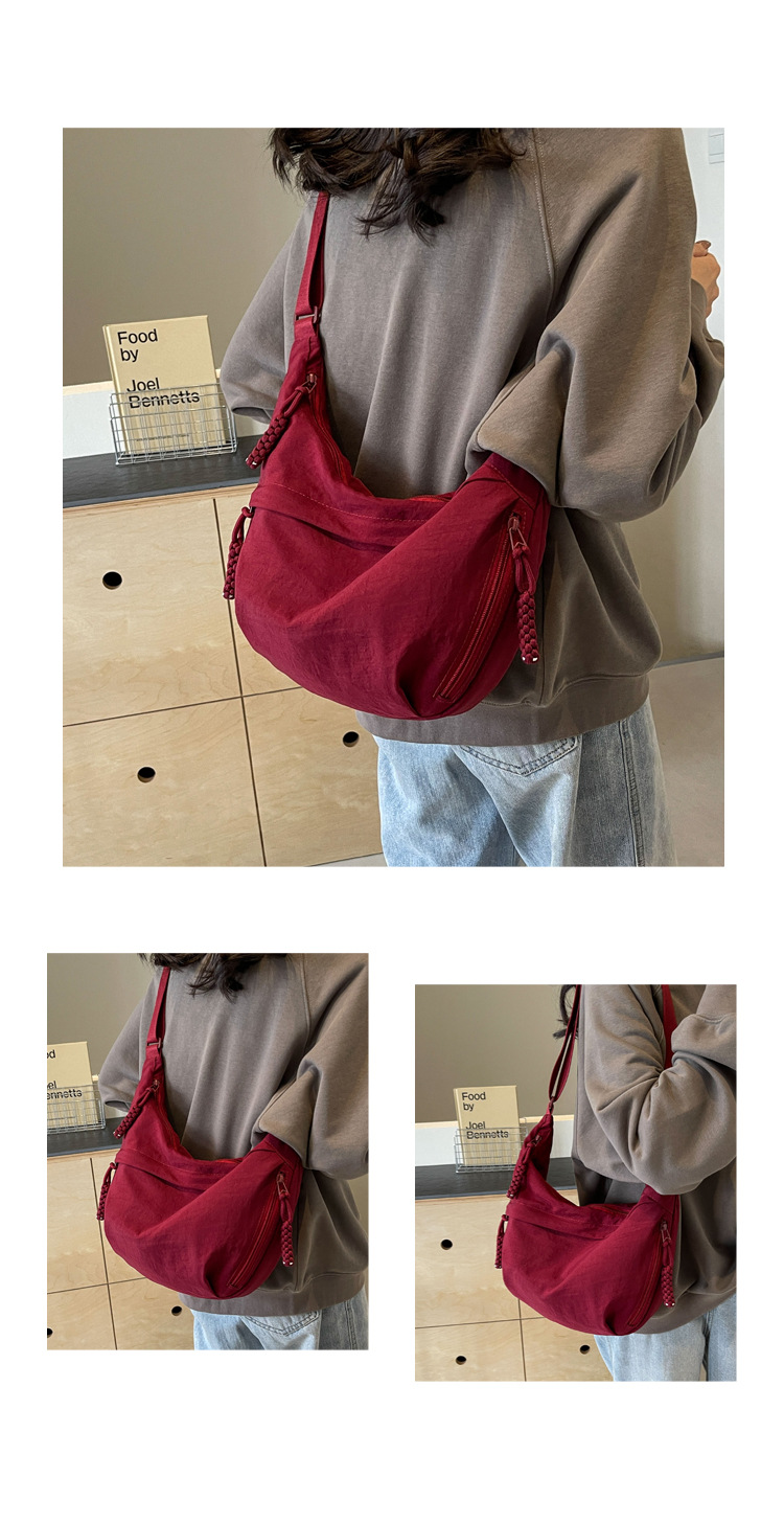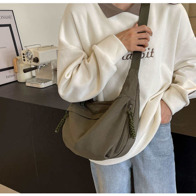 일본식 심플 여성용 크로스 바디 백 대용량 솔리드 컬러 만두 백 경량 통근 학생 클래스 숄더 백