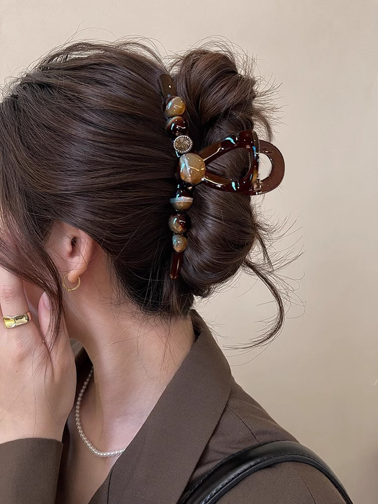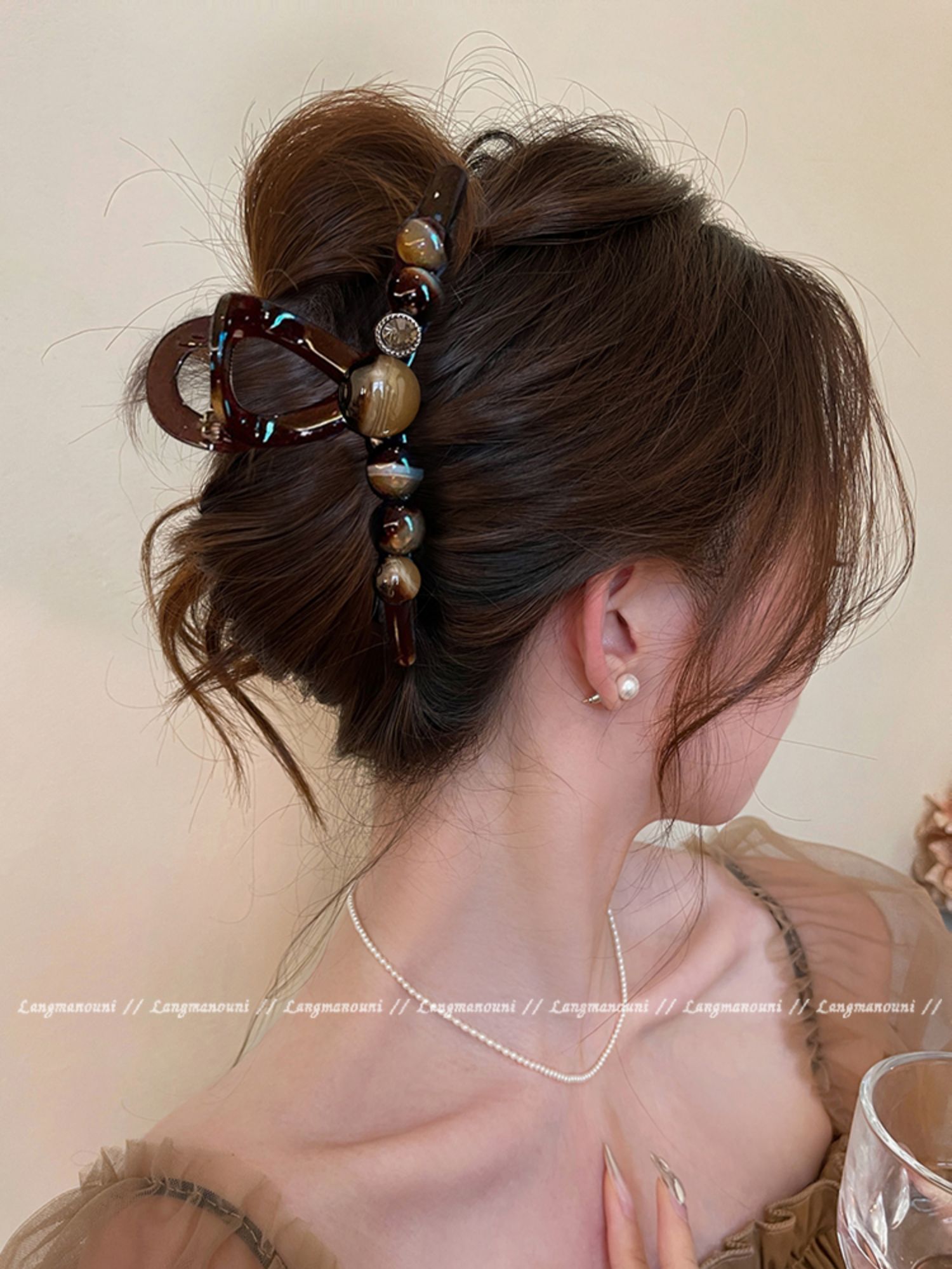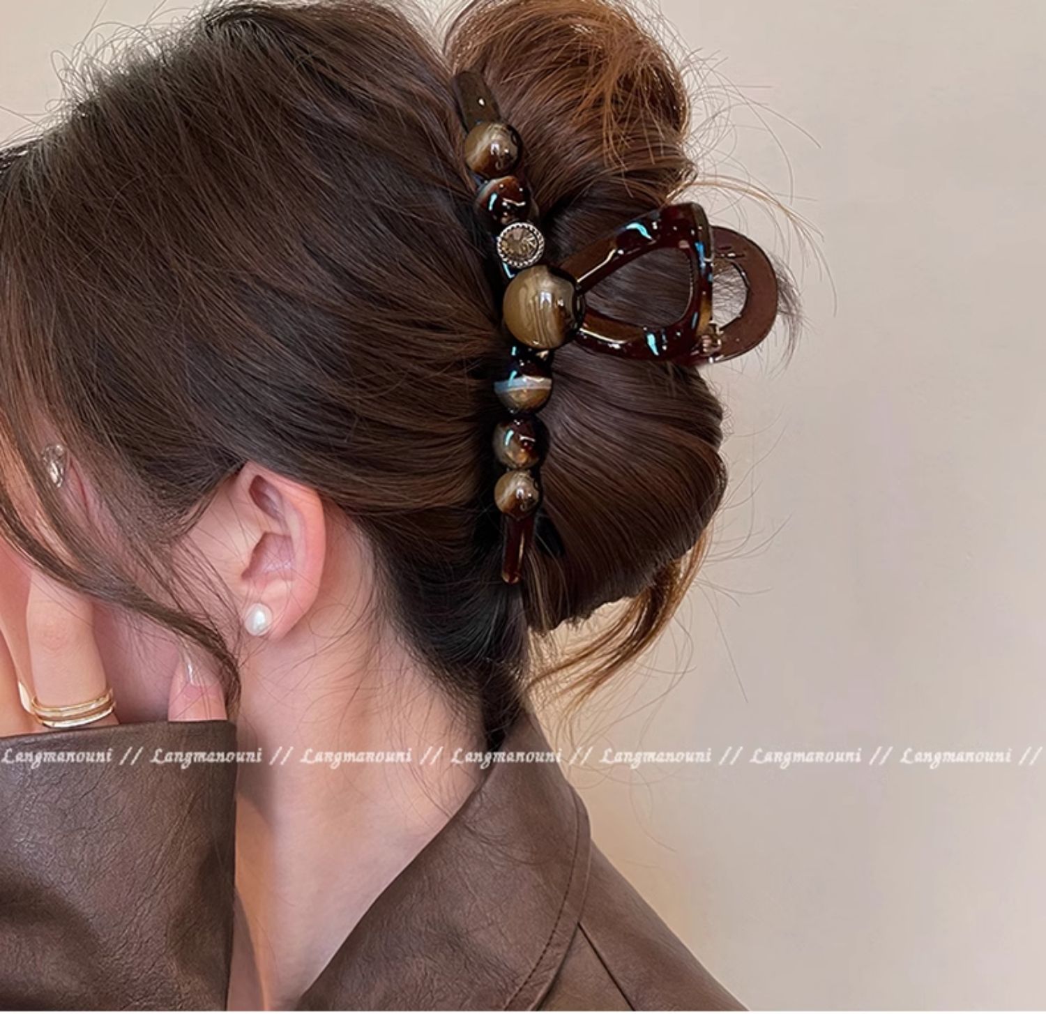 우아한 빛 럭셔리 라운드 비드 고급 그랩 클립 여성의 2025 새로운 스타일 헤어 볼륨 멀티 헤드 상어 클립 대형 헤어 클립스토어 가기