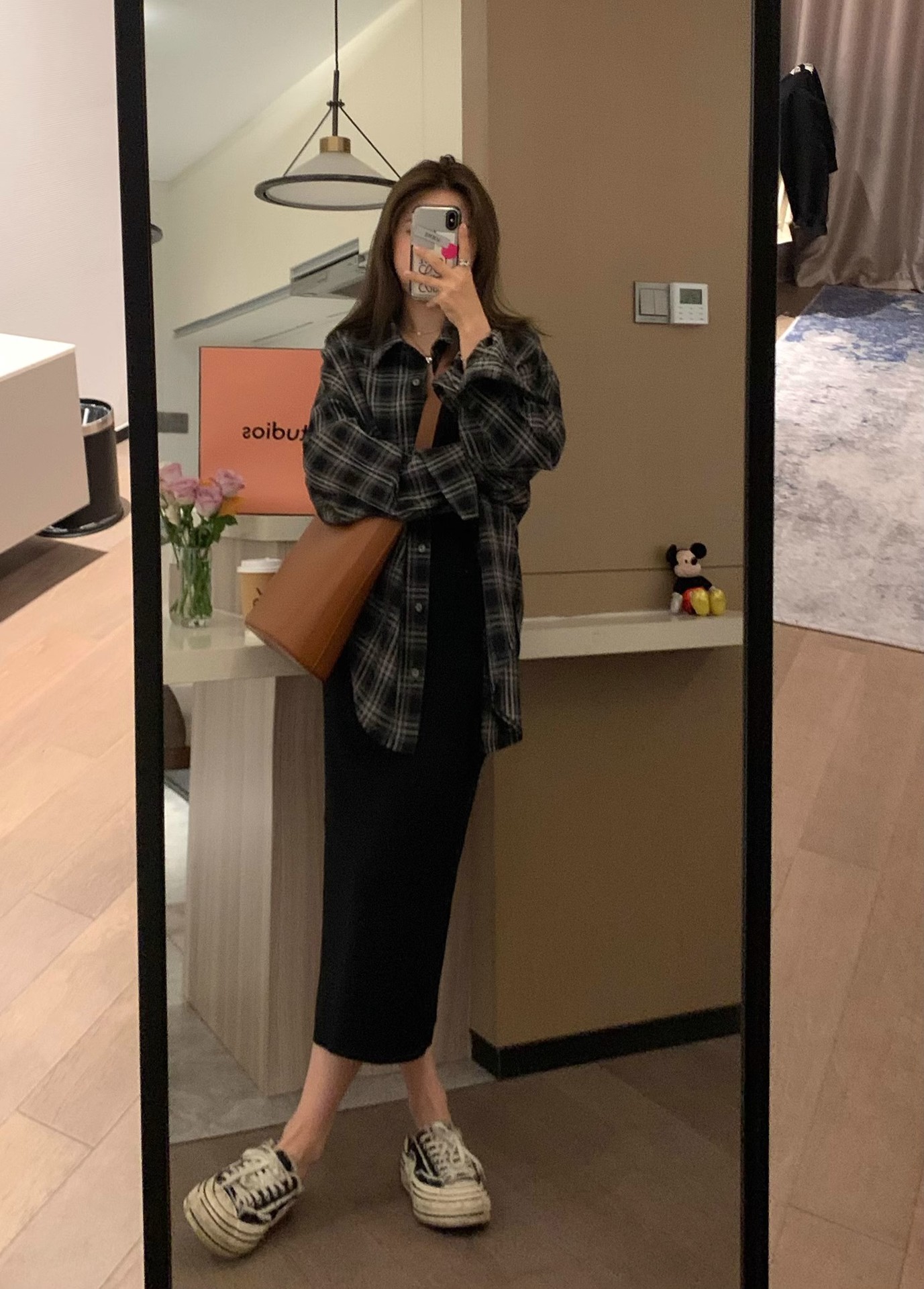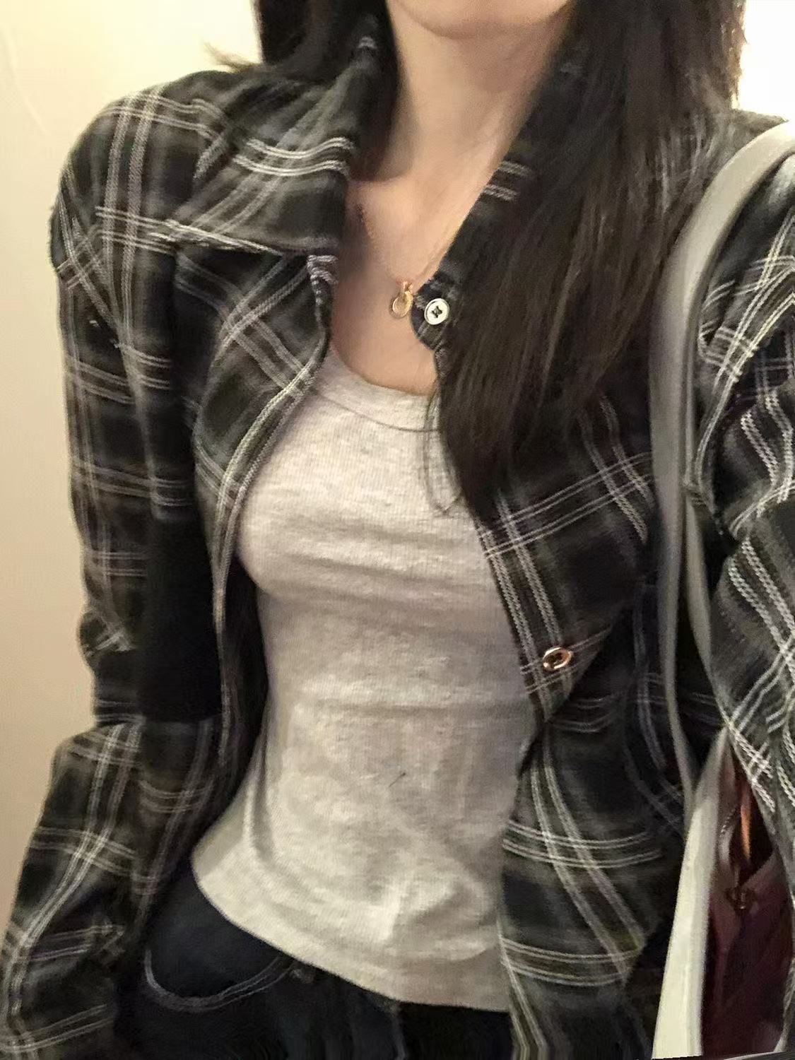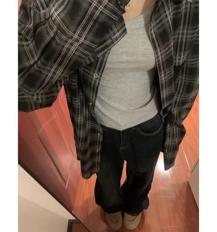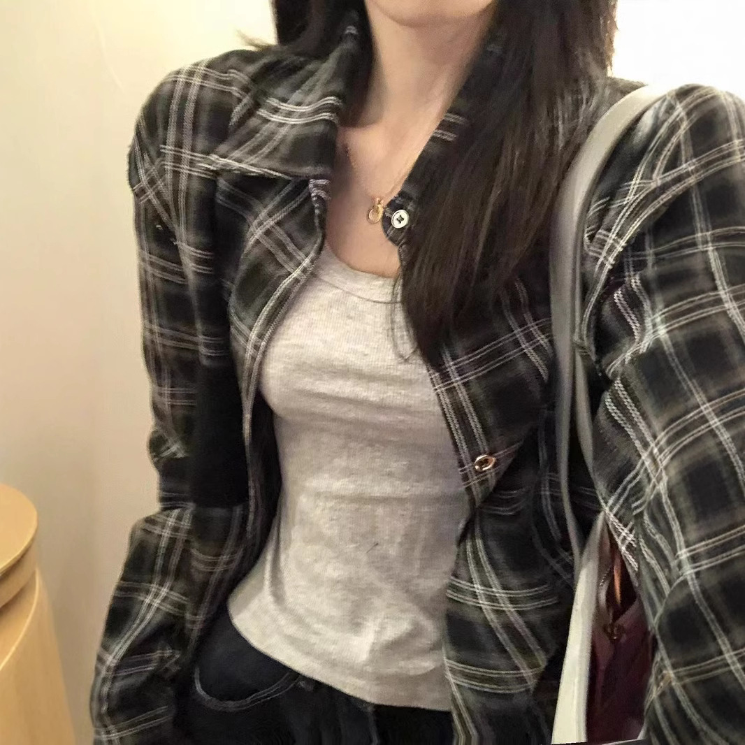 홍콩 스타일 파워 착용 하이 엔드 격자 무늬 셔츠 여성의 여름 특대 남자 친구 느슨한 얇은 카디건스토어 가기