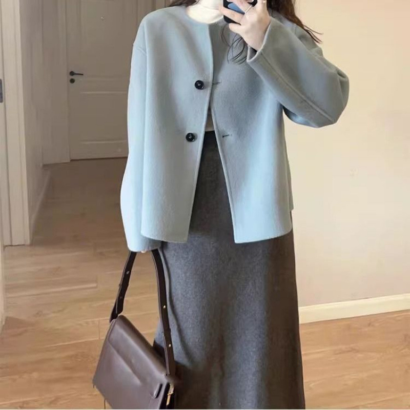 한국 드라마 2 피스 세트 부드러운 샤넬 울 쇼트 코트 스커트 세련된 패션 하이 엔드 센스 가을 겨울스토어 가기