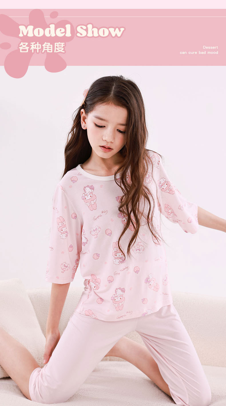 소녀 잠옷 홈 의류 세트 여름 새 모달 반팔 어린이 대형 어린이 소녀 에어컨 여름 옷스토어 가기