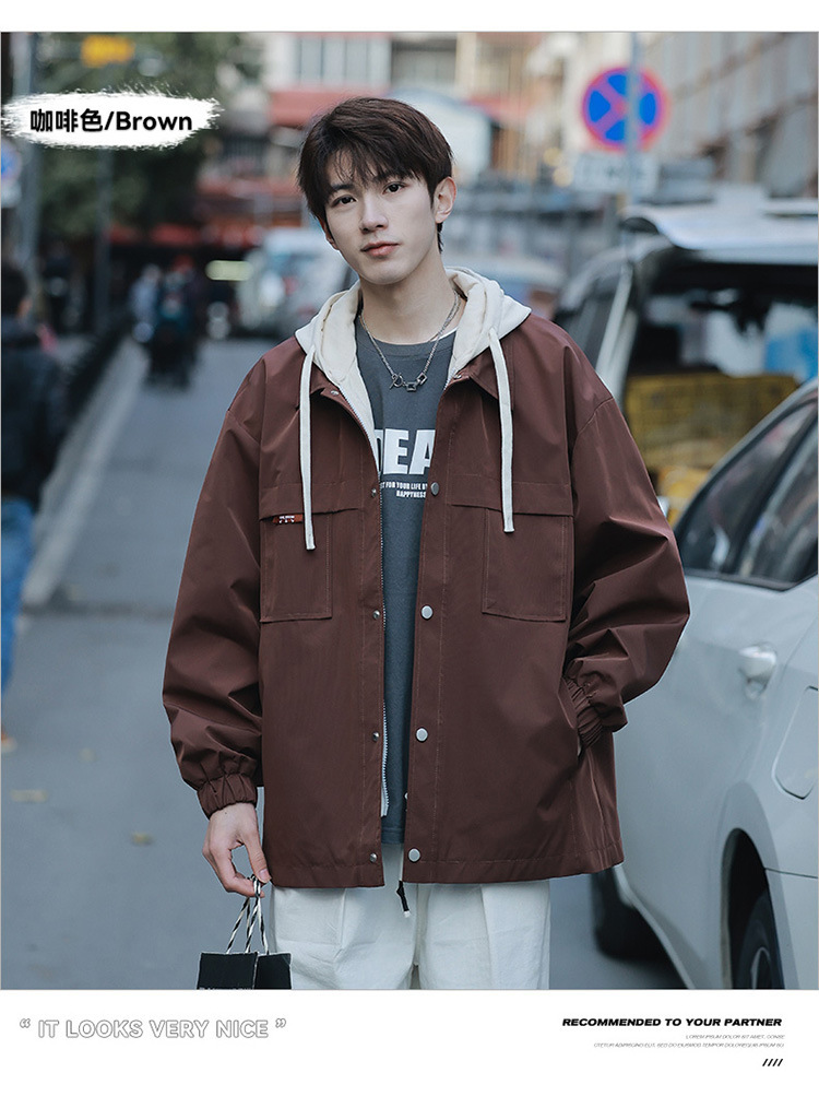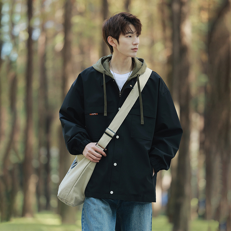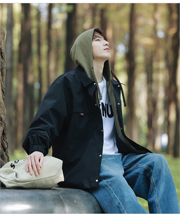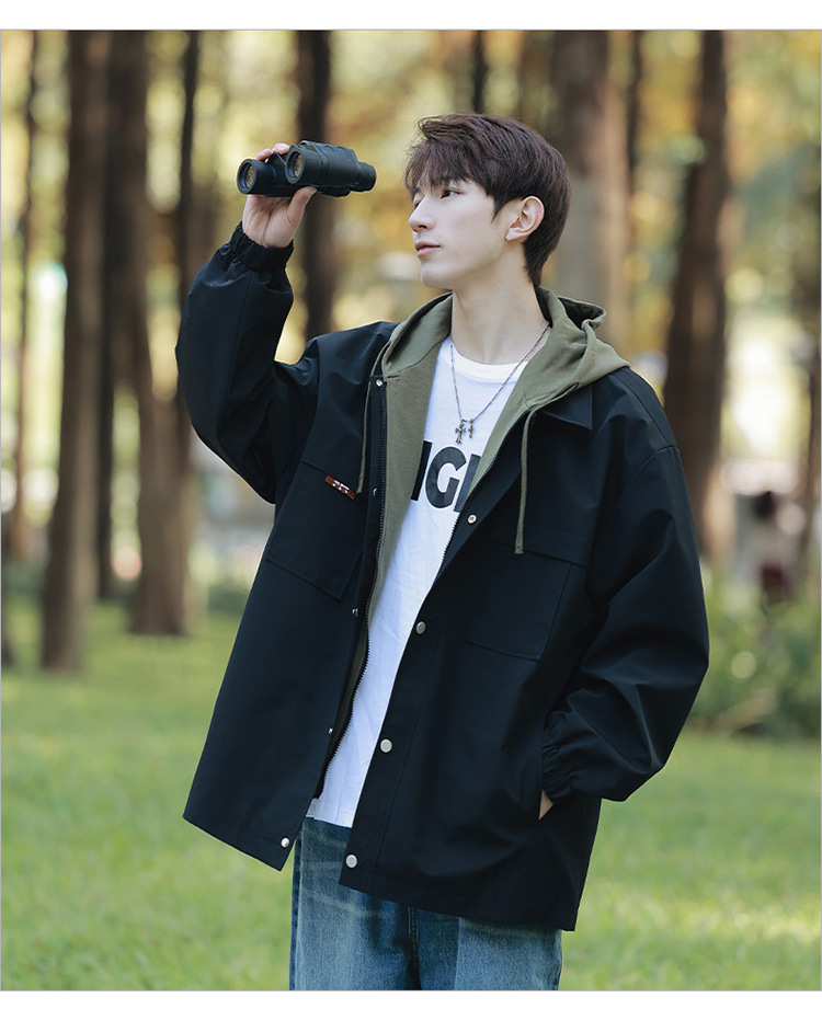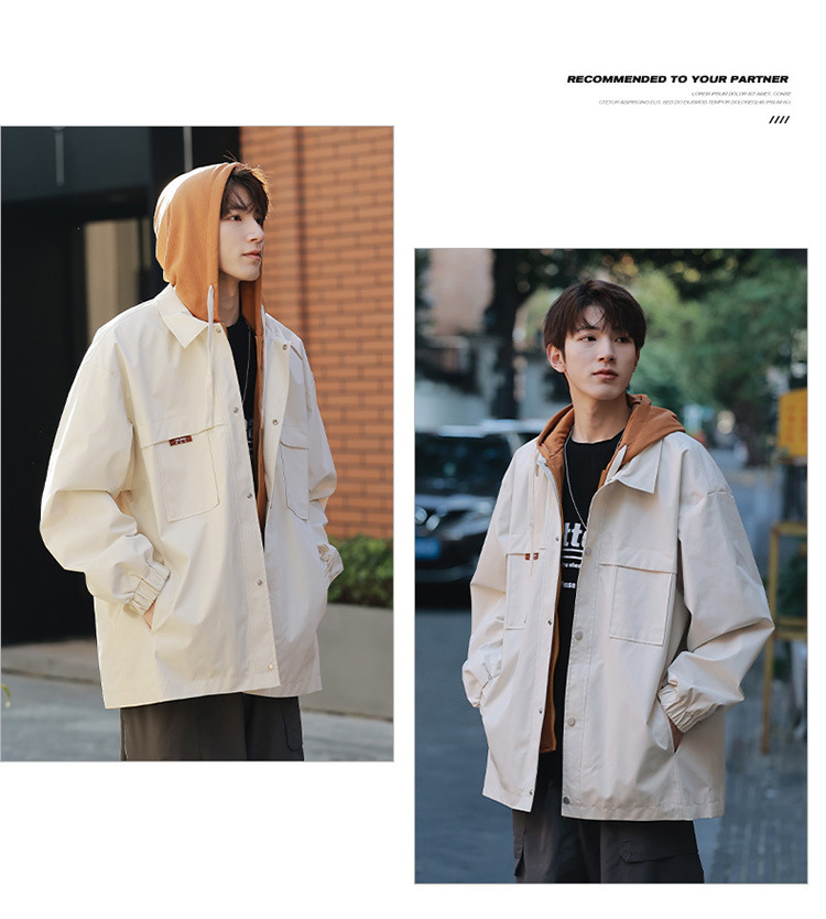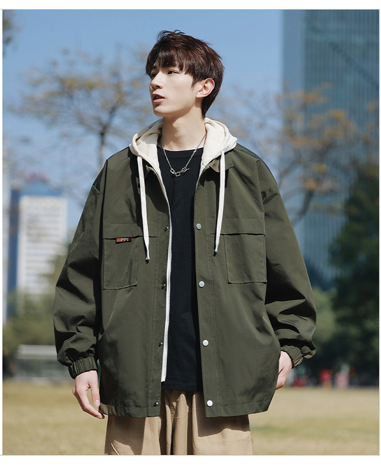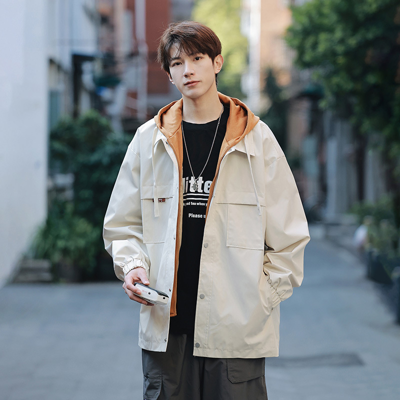 코트 남자 봄과 가을 소년의 2024 새로운 가짜 2 피스 재킷 십대 남자 후드 탑 없음스토어 가기