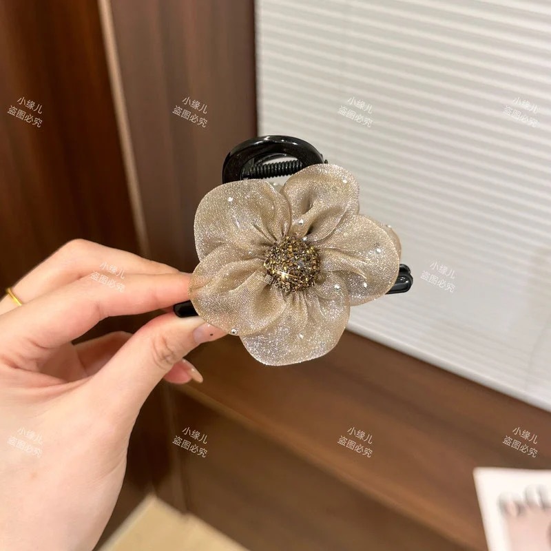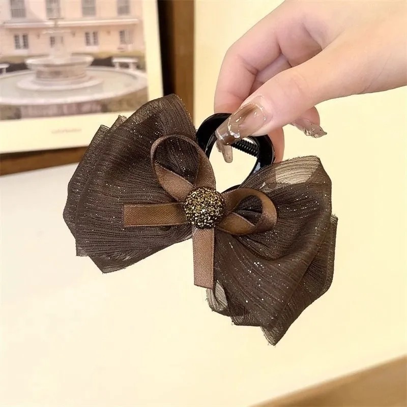 • #메쉬 스파클링 다이아몬드 클립*커피 컬러