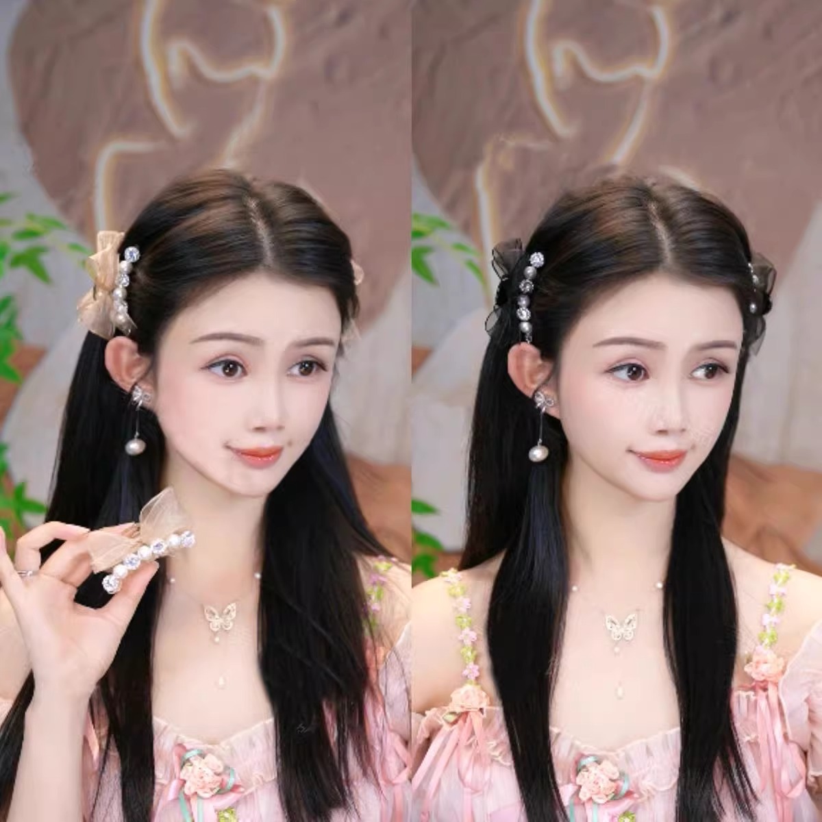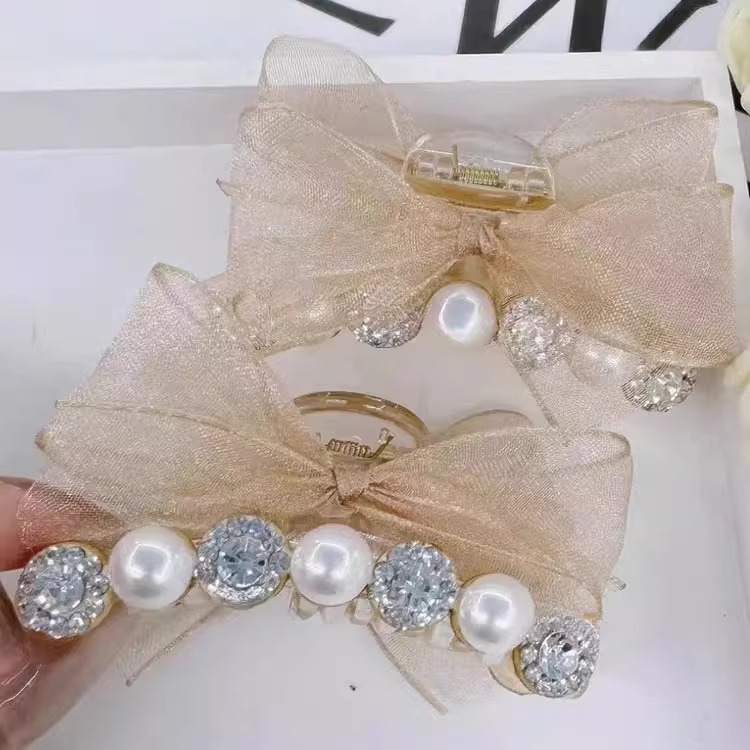 • #메쉬 비드 다이아몬드 클립*샴페인 컬러