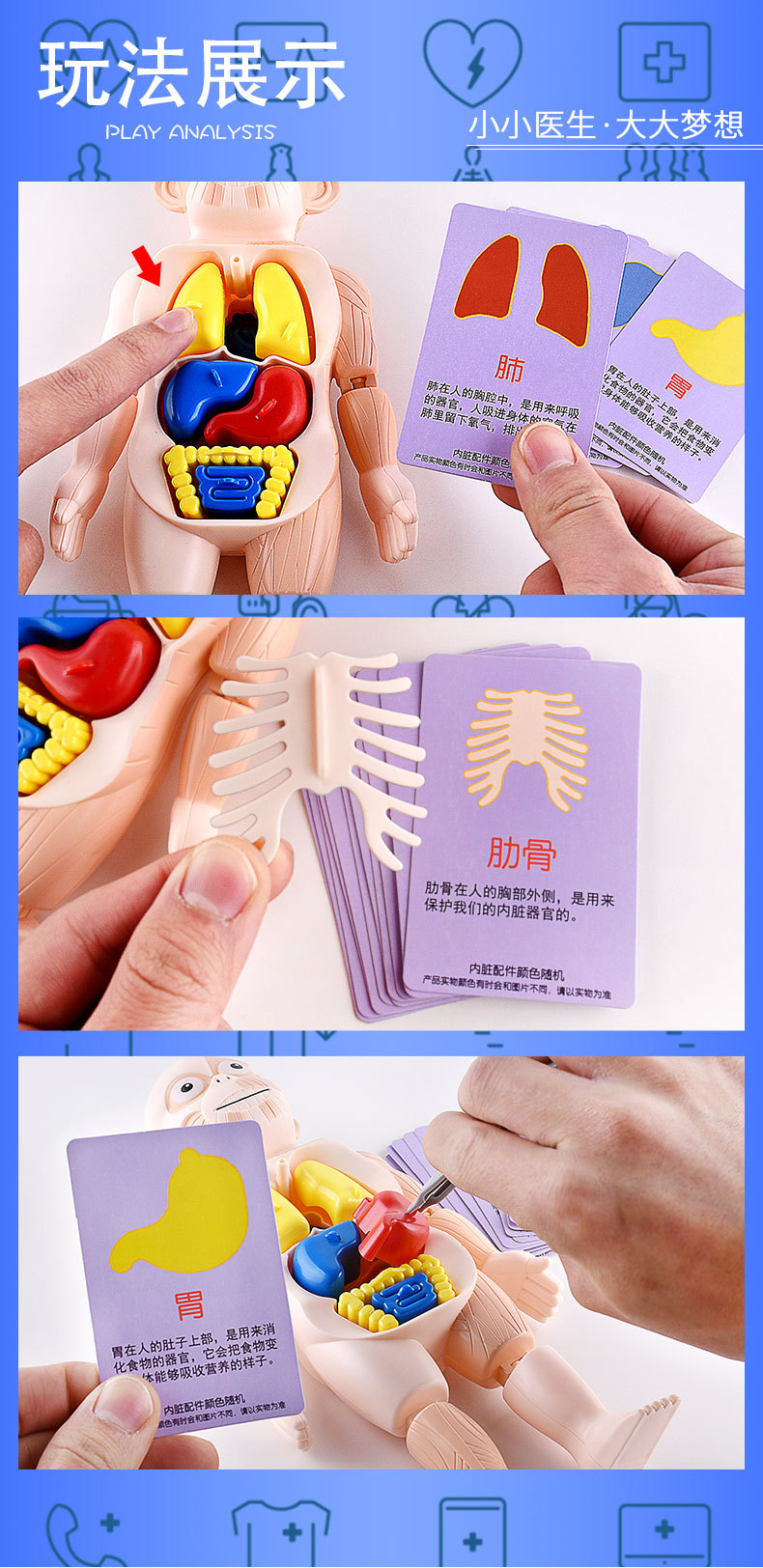 인체 구조 모델 의료 내장 해부학 장기 3d 분리 가능한 조립 몸통 어린이 과학 및 교육 장난감스토어 가기