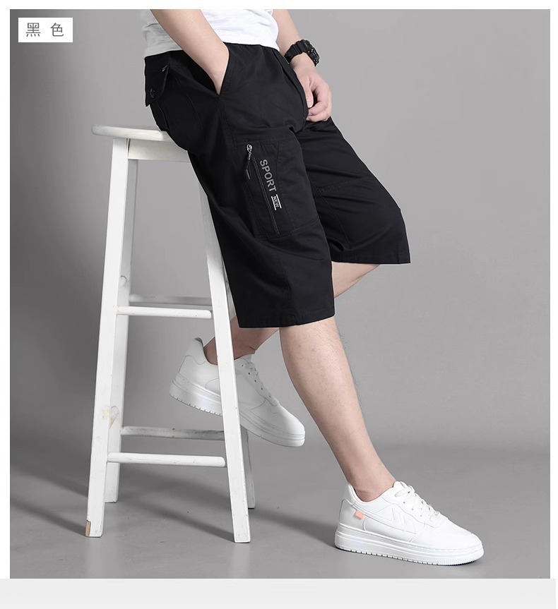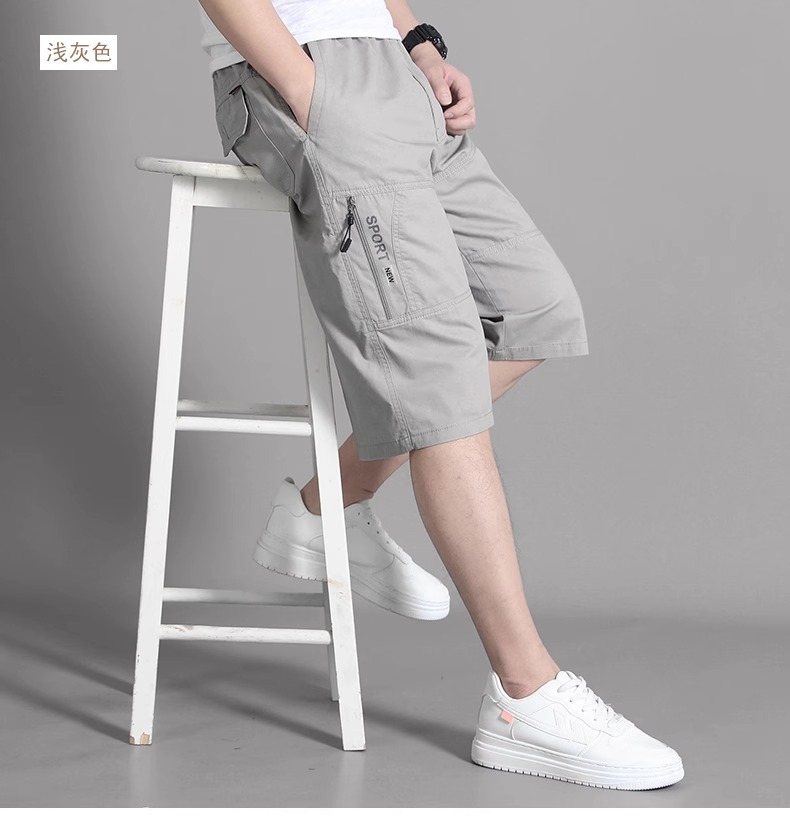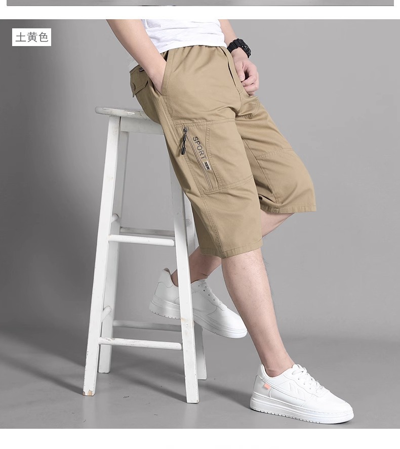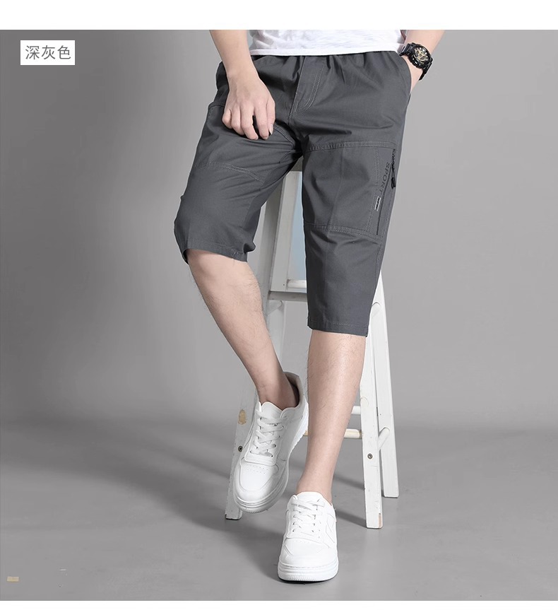 코일 반바지 남성 여름 새로운 유행 캐주얼 바지 느슨한 솔리드 컬러 얇은 지퍼 포켓 7 포인트 바지 재고스토어 가기
