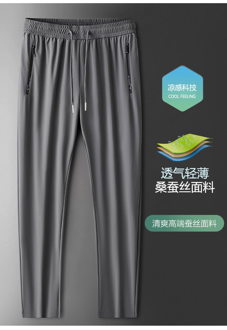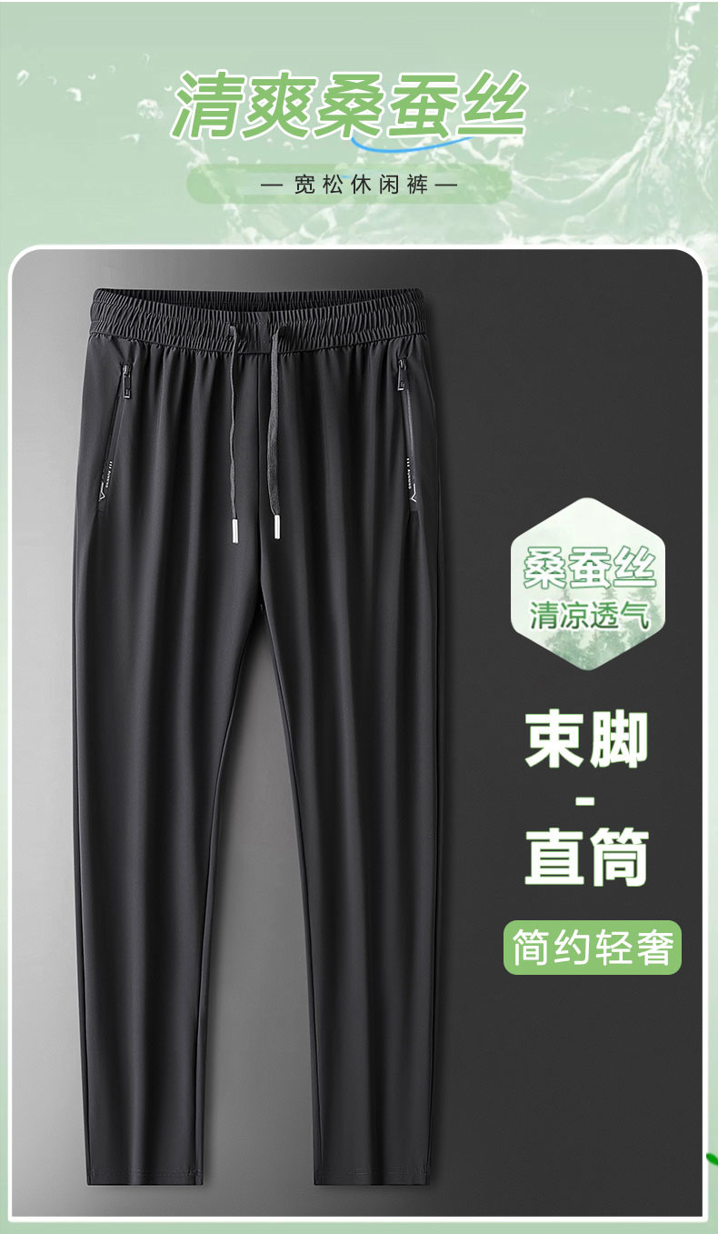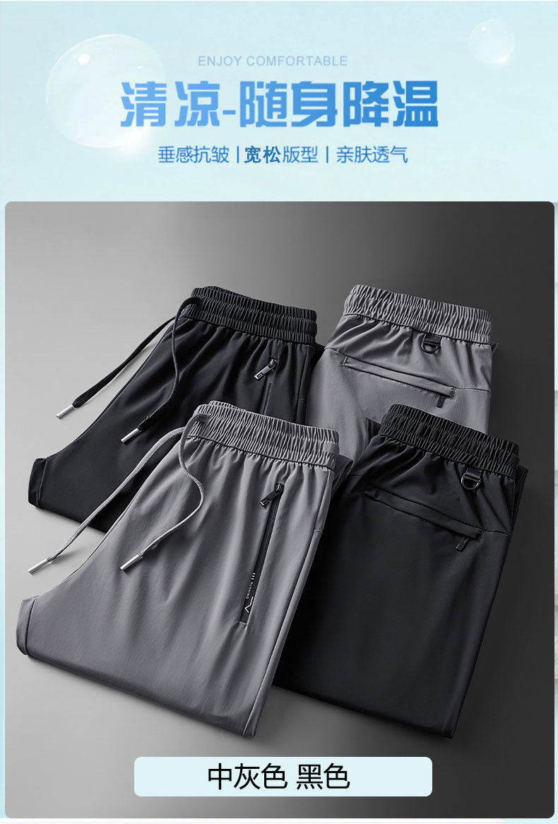 남성용 아이스 실크 바지 남성용 여름 Ins 유행 얇은 쿨 통기성 빠른 건조 캐주얼 바지 느슨한 스트레이트 레그 스포츠 바지