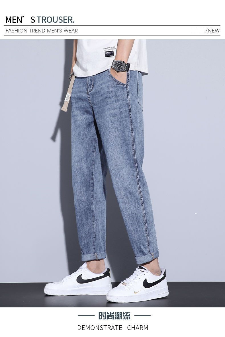 아메리칸 스트리트 청바지 남성용 봄과 가을 빈티지 루즈 남성용 트렌디 한 스트레이트 캐주얼 하렘 바지스토어 가기
