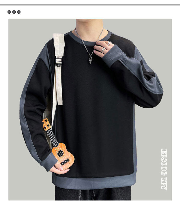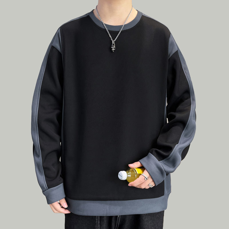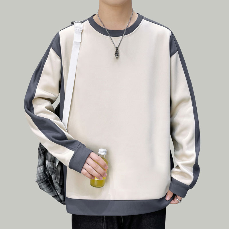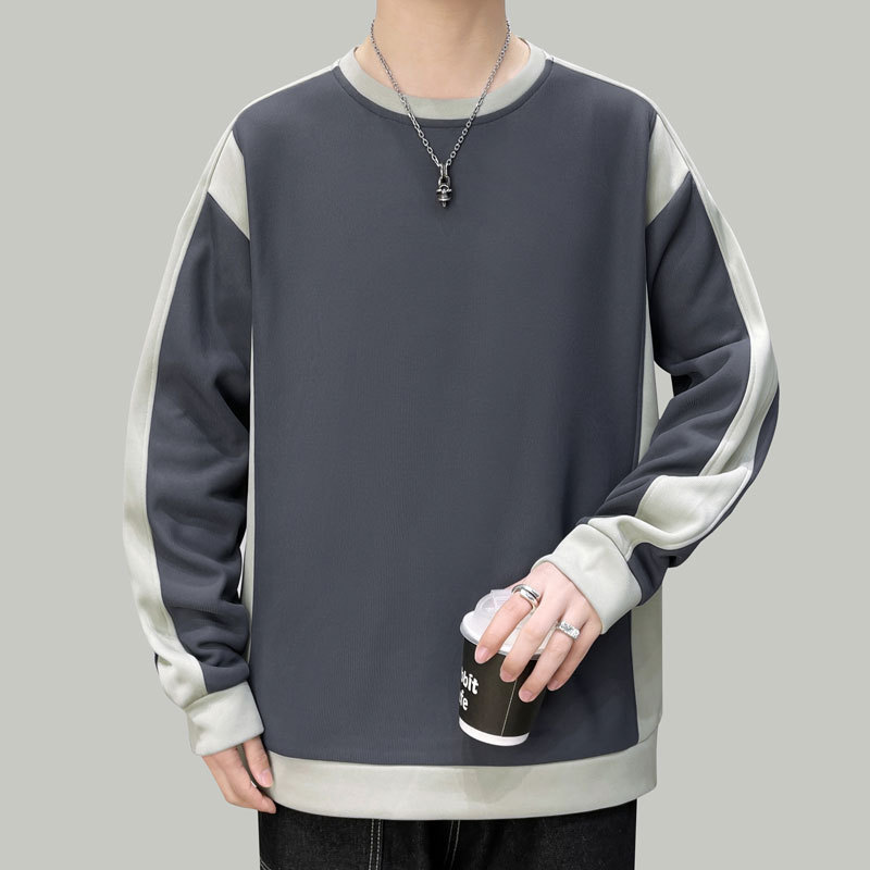 남자 봄과 가을 새로운 대조 컬러 라운드 넥 스웨트 올 매치 캐주얼 트렌디 긴 소매 옷 소년과 학생을위한 느슨한