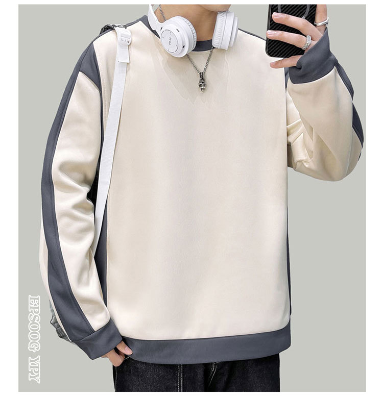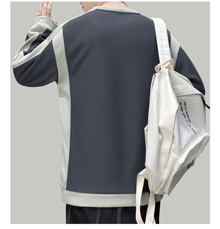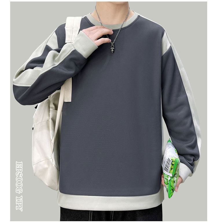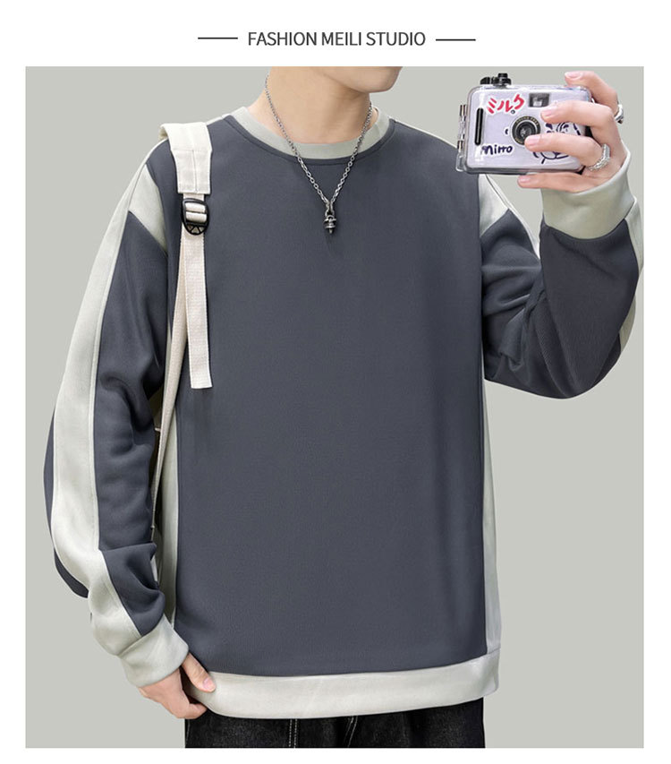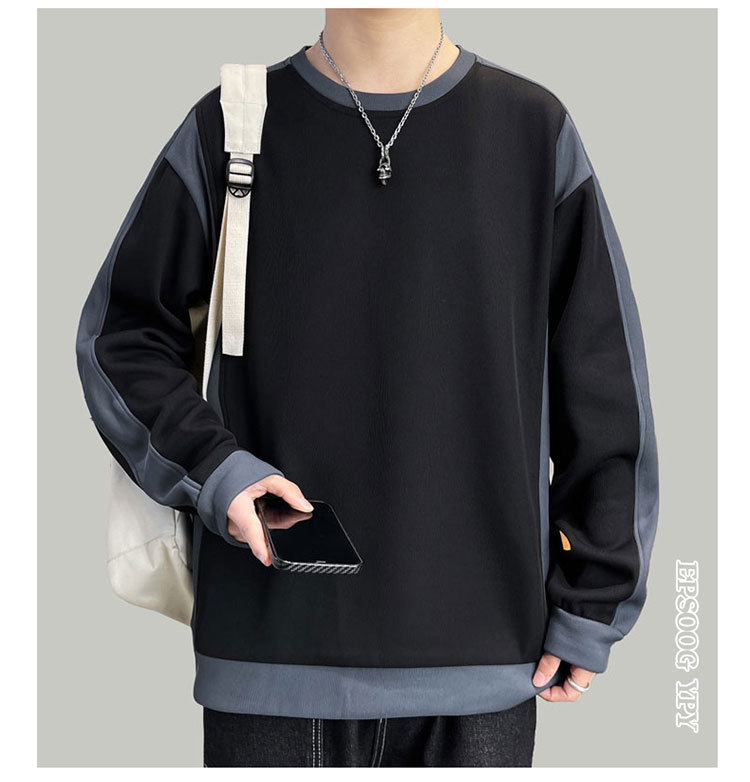 남자 봄과 가을 새로운 대조 컬러 라운드 넥 스웨트 올 매치 캐주얼 트렌디 긴 소매 옷 소년과 학생을위한 느슨한스토어 가기