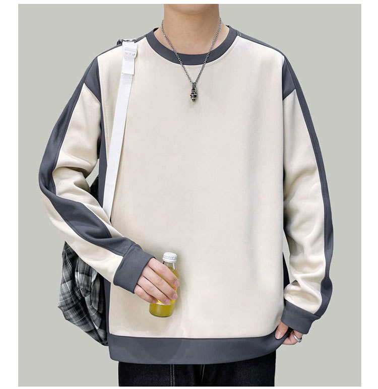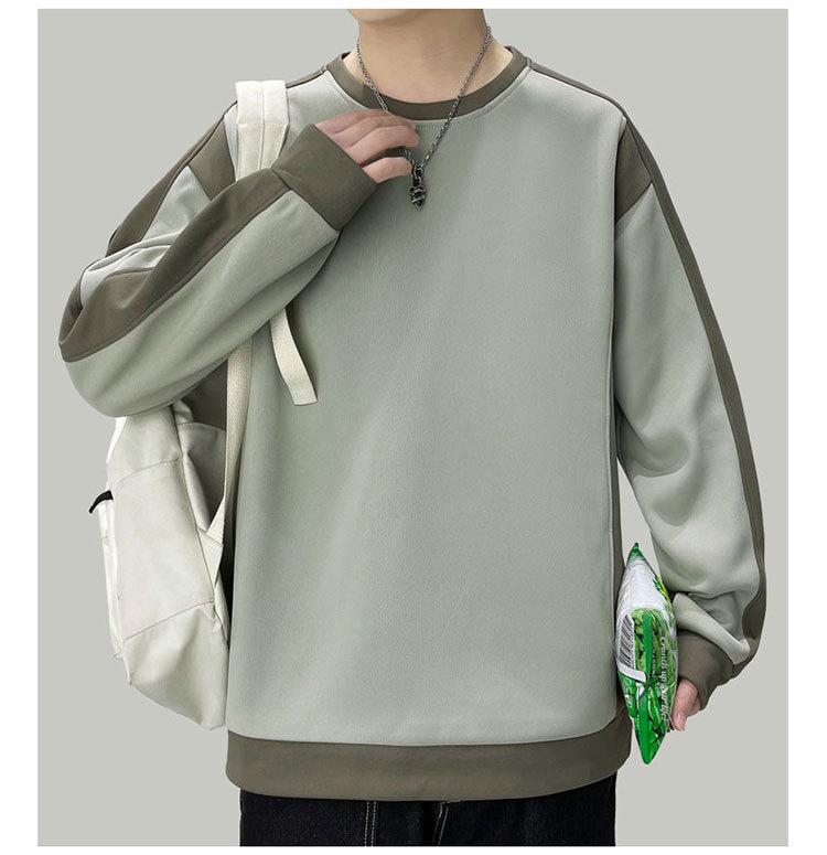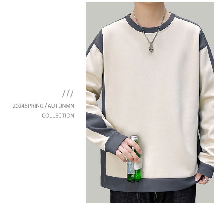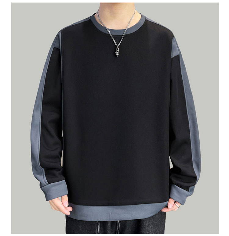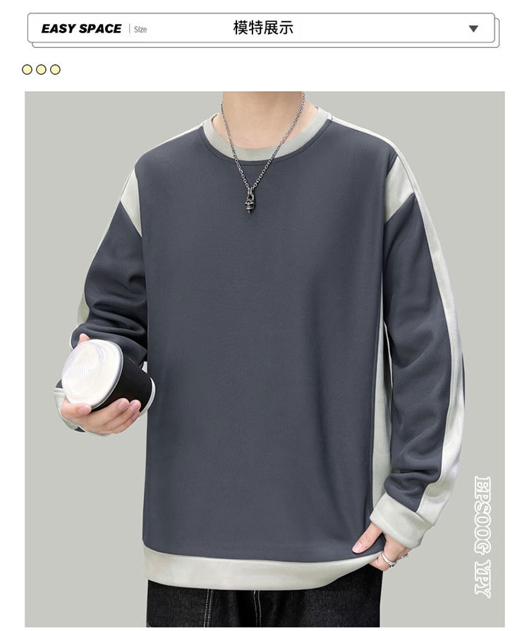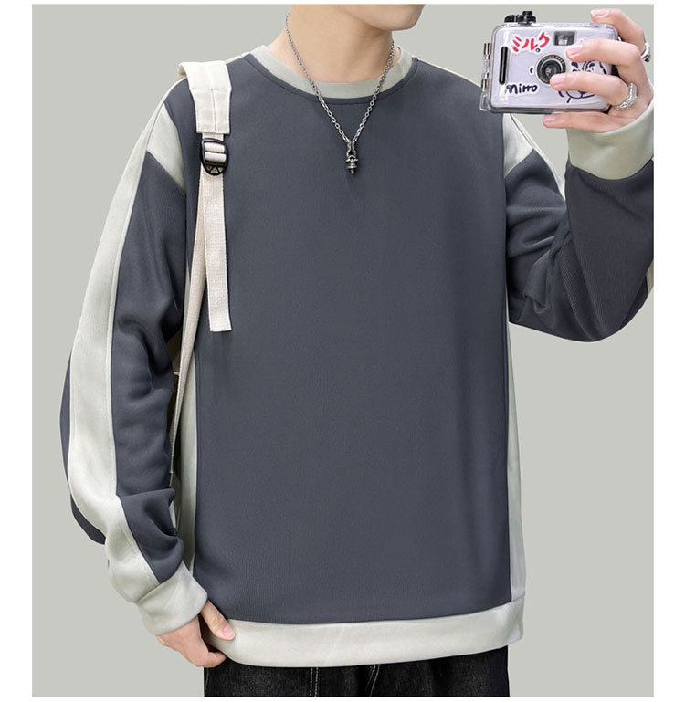 남자 봄과 가을 새로운 대조 컬러 라운드 넥 스웨트 올 매치 캐주얼 트렌디 긴 소매 옷 소년과 학생을위한 느슨한스토어 가기