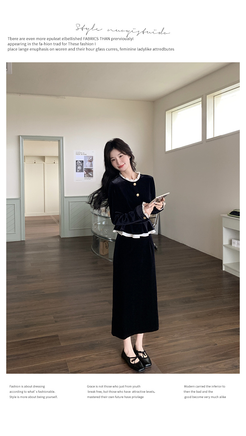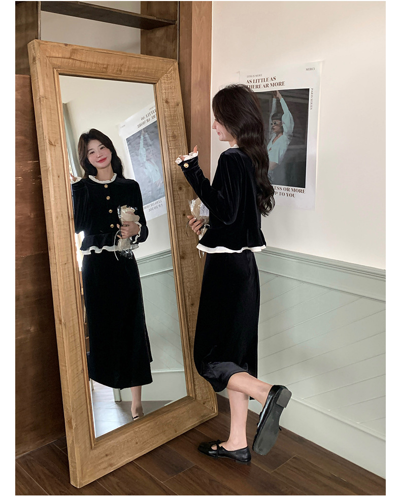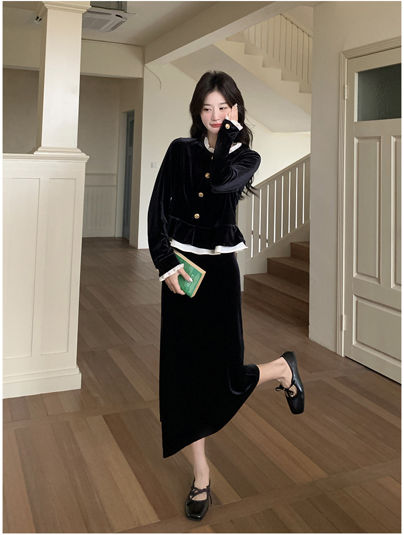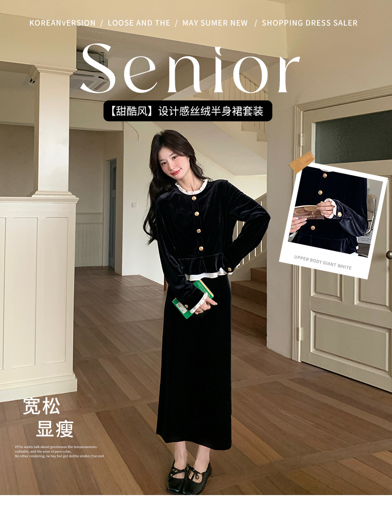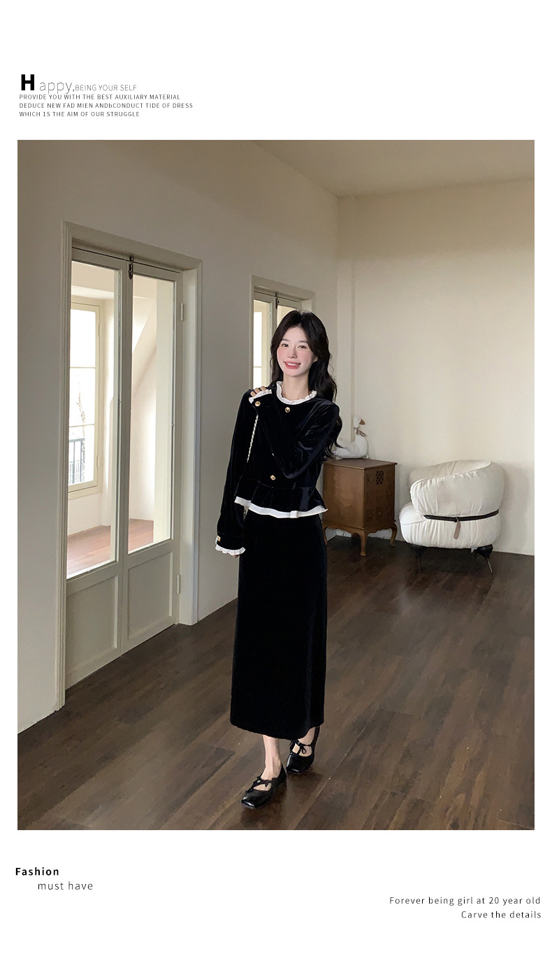 [멩메이] 25 봄 벨벳 스커트 세트 여성 투피스 라이트 럭셔리 하이 엔드 독특한 아름다운 슈퍼 파이어스토어 가기