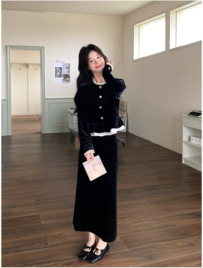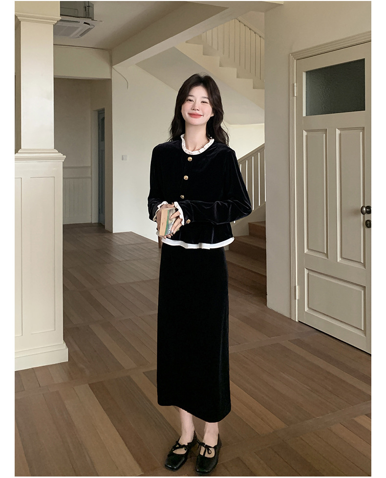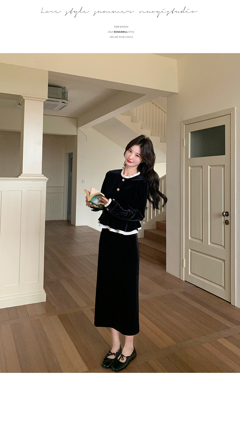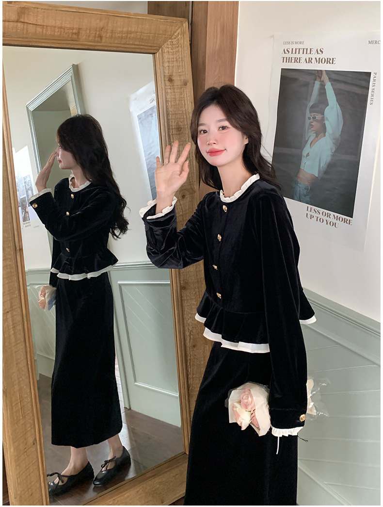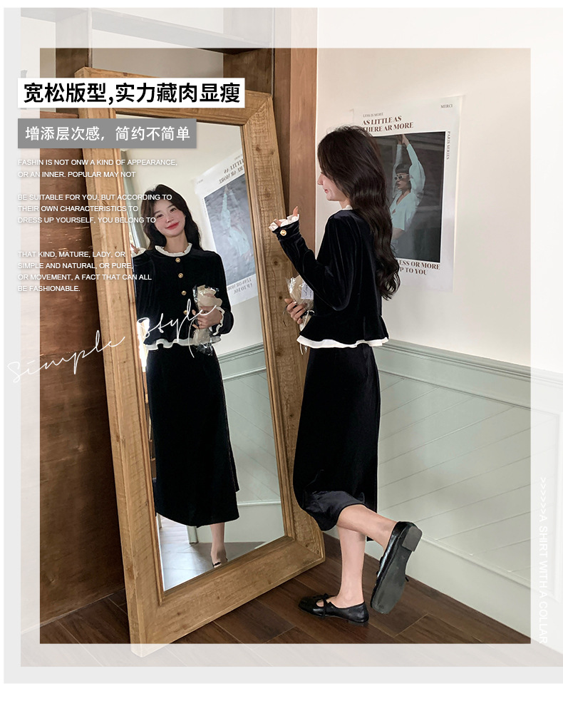 [멩메이] 25 봄 벨벳 스커트 세트 여성 투피스 라이트 럭셔리 하이 엔드 독특한 아름다운 슈퍼 파이어스토어 가기