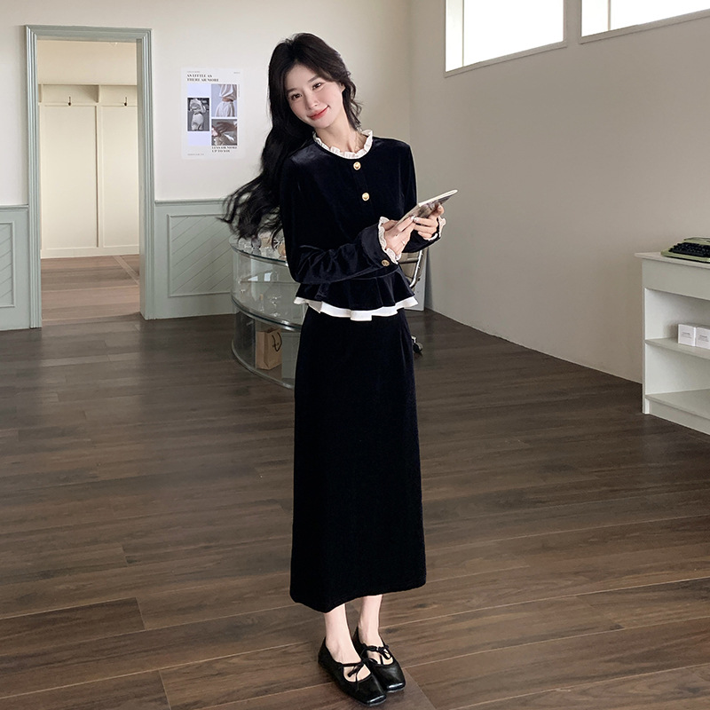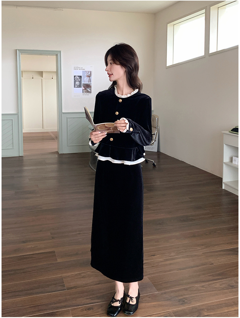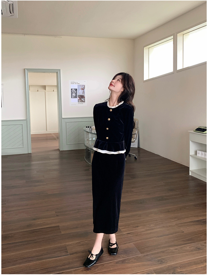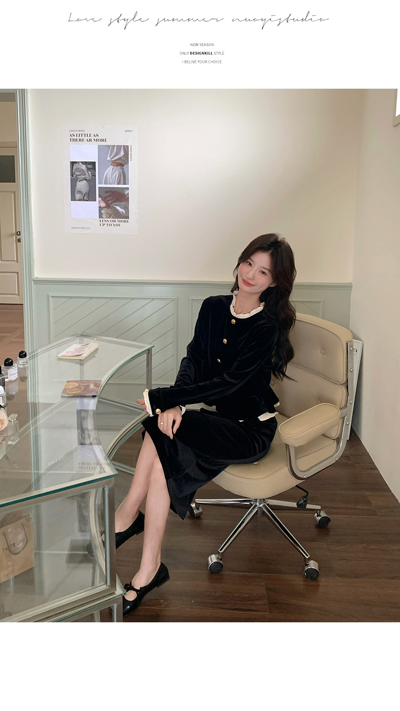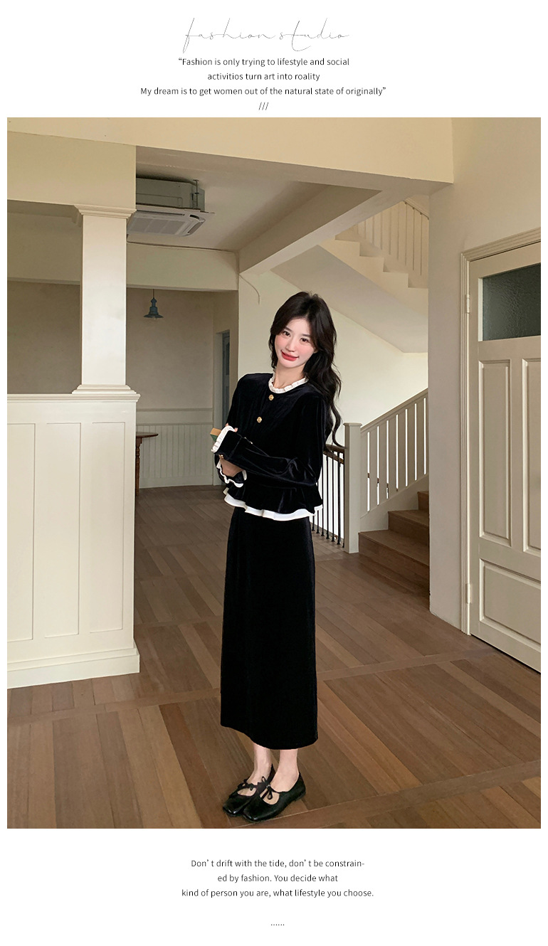 [멩메이] 25 봄 벨벳 스커트 세트 여성 투피스 라이트 럭셔리 하이 엔드 독특한 아름다운 슈퍼 파이어스토어 가기