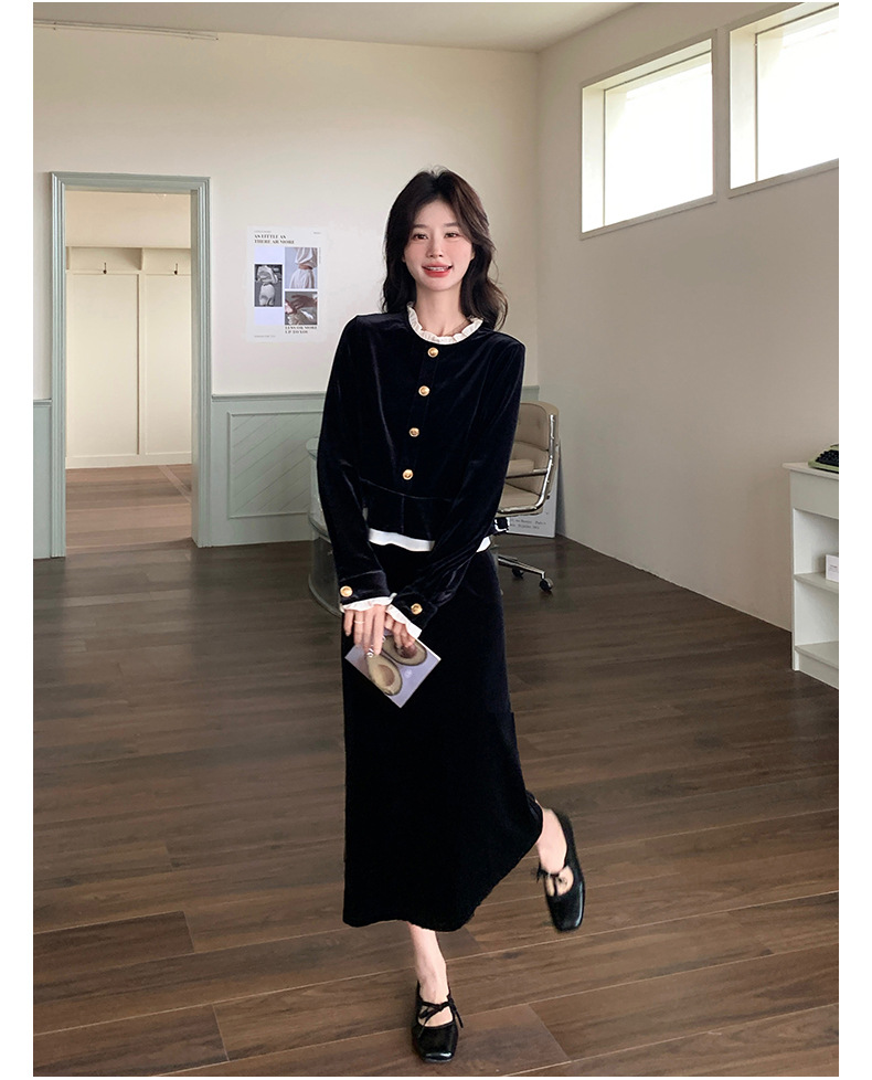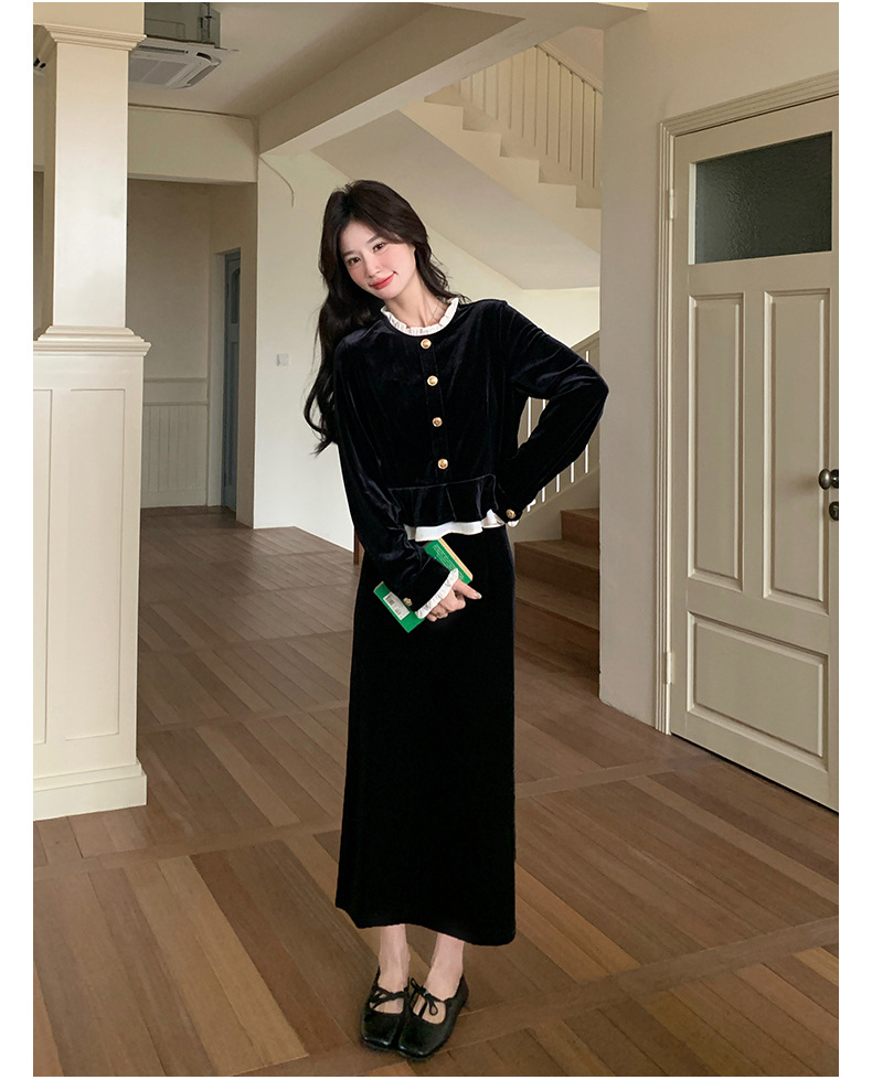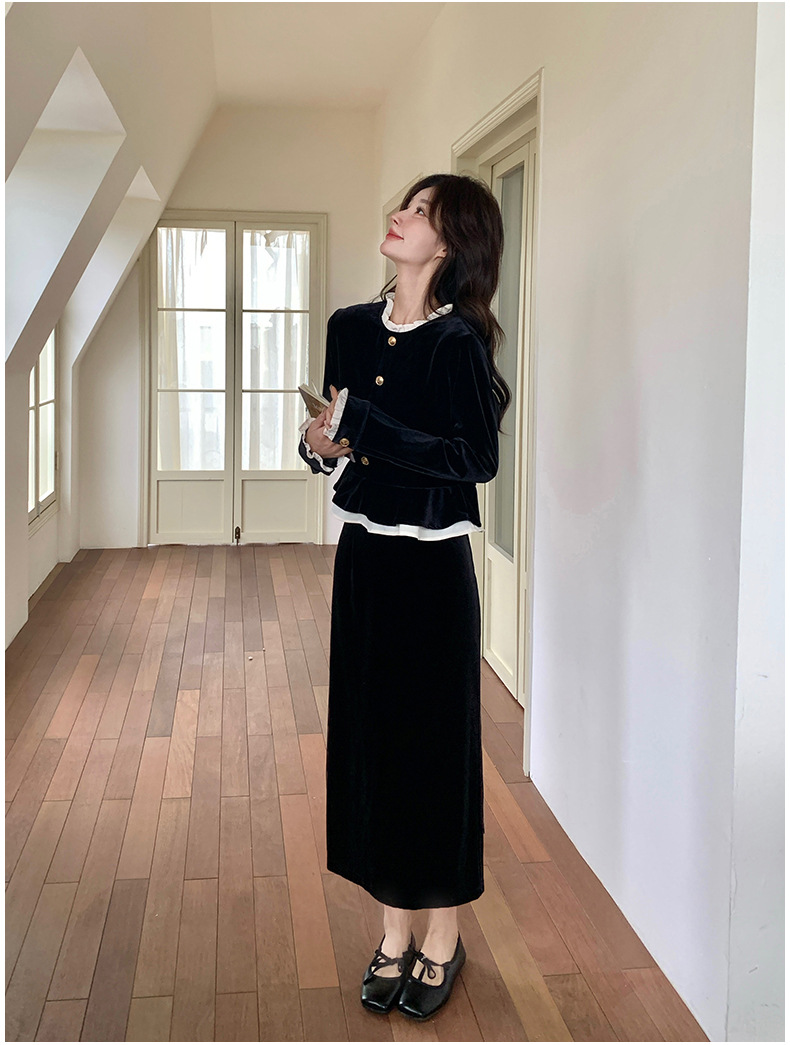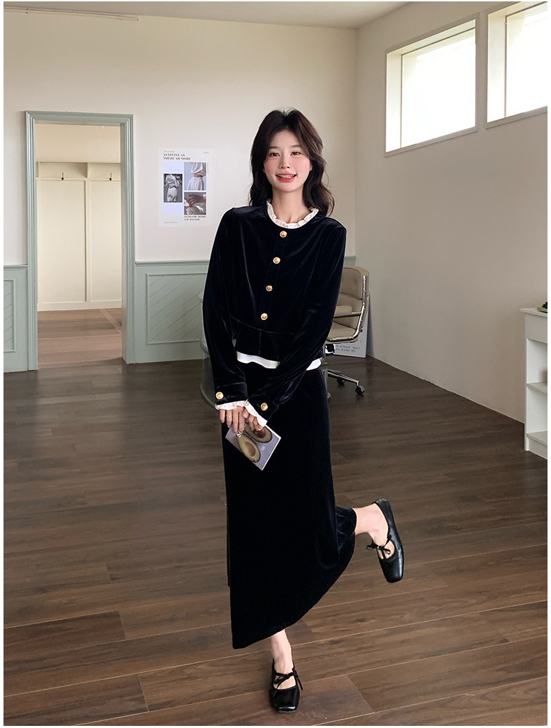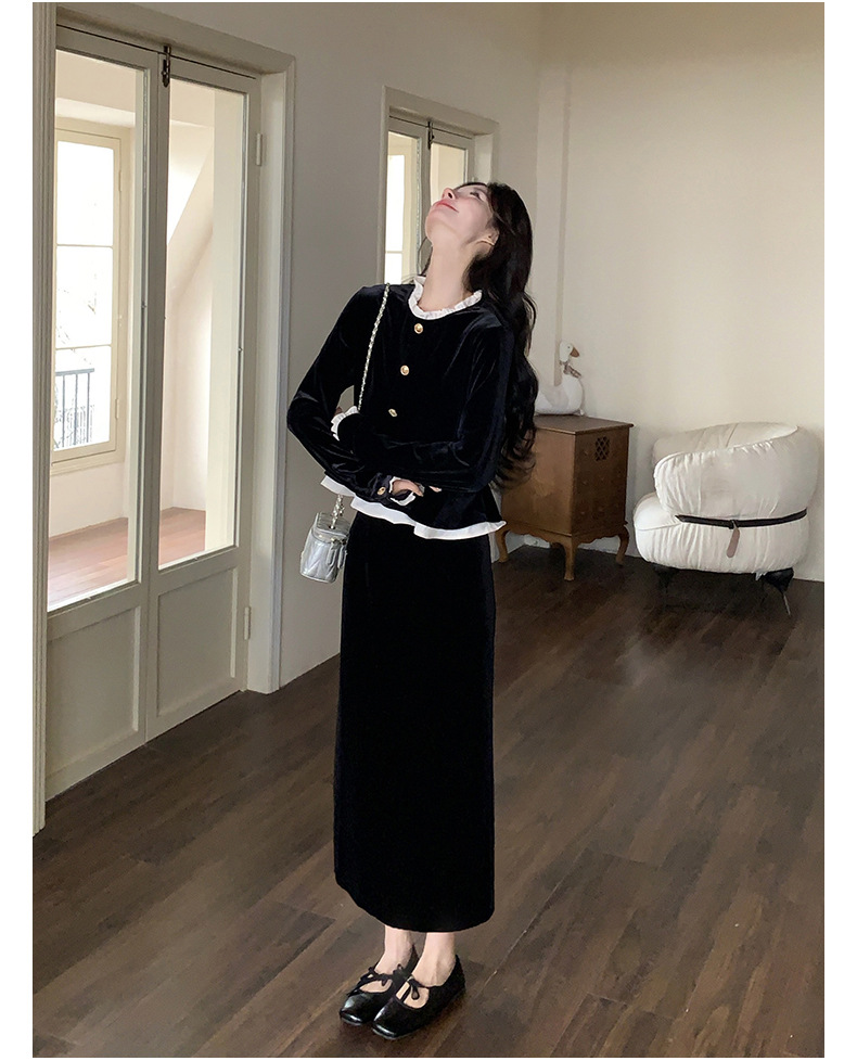 [멩메이] 25 봄 벨벳 스커트 세트 여성 투피스 라이트 럭셔리 하이 엔드 독특한 아름다운 슈퍼 파이어