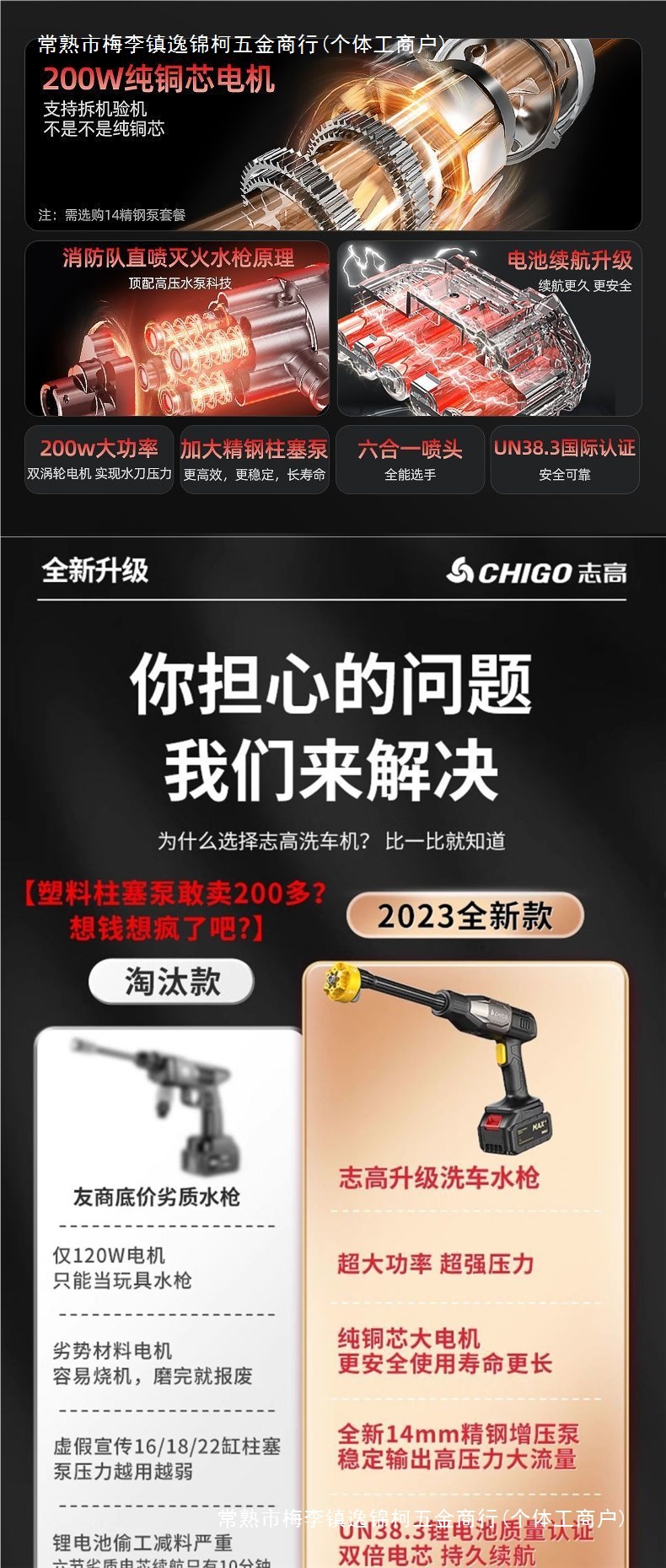 Zhigao 무선 자동차 세탁기 세차 고압 물 총 가정용 과급 전기 총 리튬 배터리 강한 압력스토어 가기