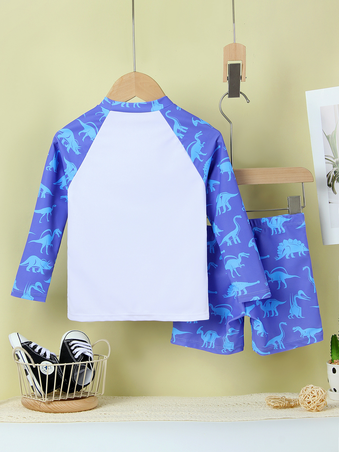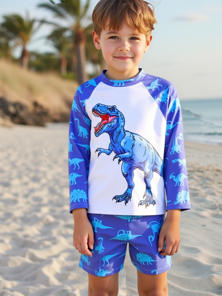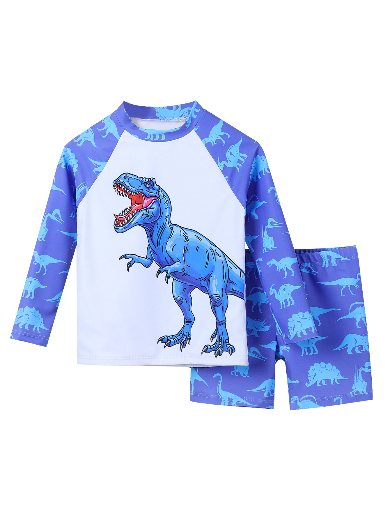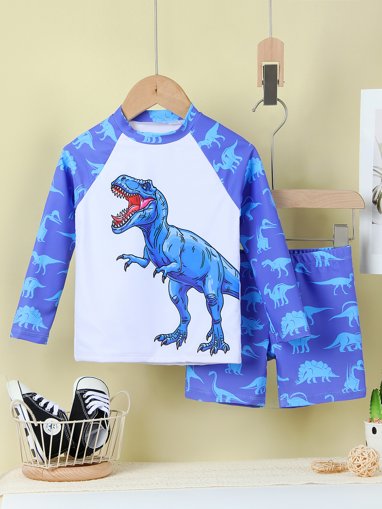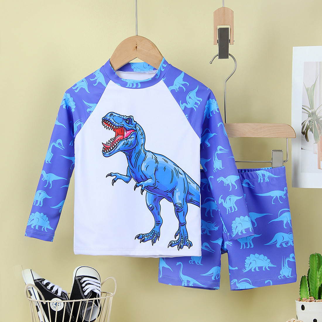 어린이 수영복 소년의 분할 긴 소매 수영복 2025 새로운 공룡 반바지 선 스크린 횡단 수영복 소년