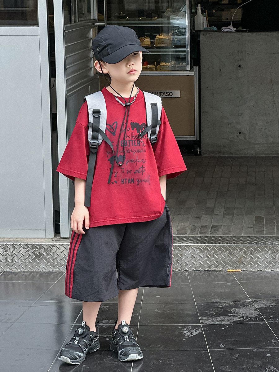 소년 여름 반팔 티셔츠 아동 한국어 버전 2025 새로운 여름 스포츠 캐주얼 바지 정장 아동 의류 5 점 바지