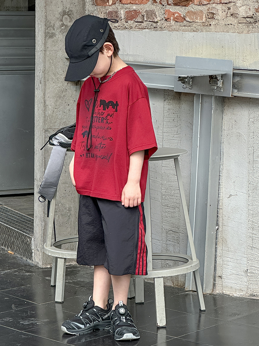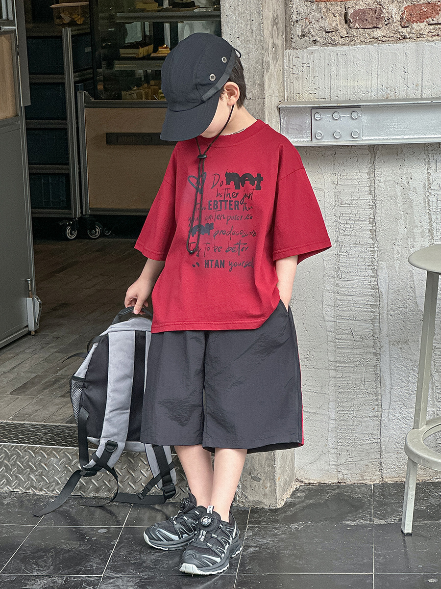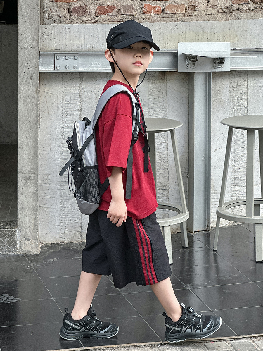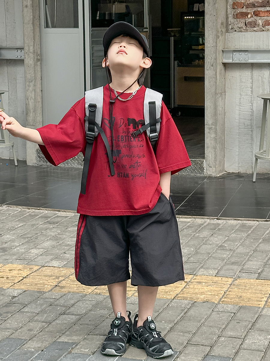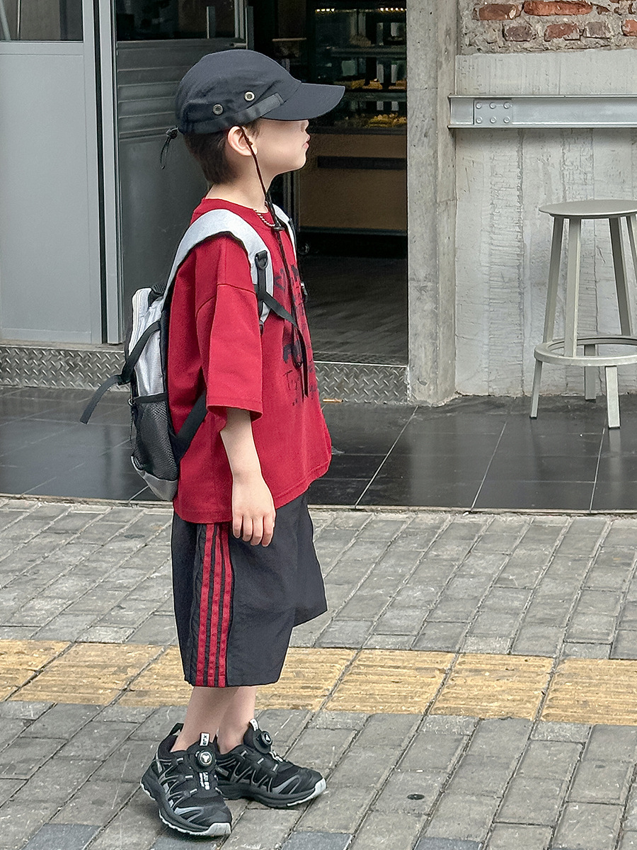 소년 여름 반팔 티셔츠 아동 한국어 버전 2025 새로운 여름 스포츠 캐주얼 바지 정장 아동 의류 5 점 바지스토어 가기