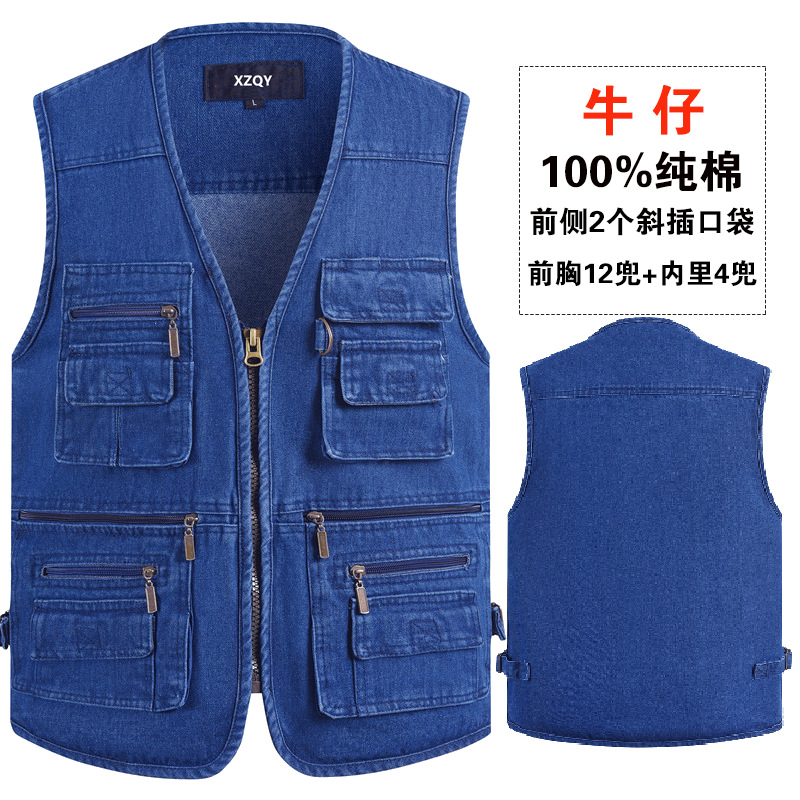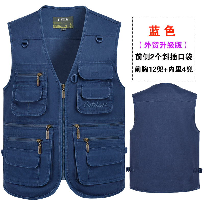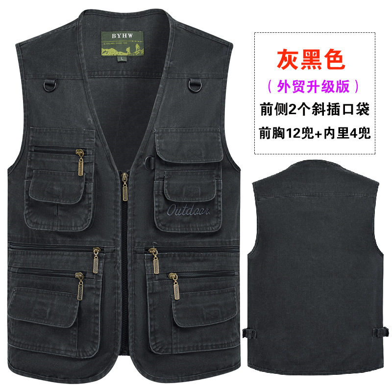 대외 무역 수출 플러스 사이즈 검은 조끼 봄과 가을 남자 멀티 포켓 인쇄 로고 도매 300kg 조끼스토어 가기