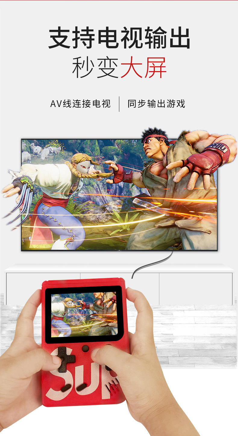 产品配置:包装+说明书+主机+电池+充电线+AV线(双人配一个手柄)