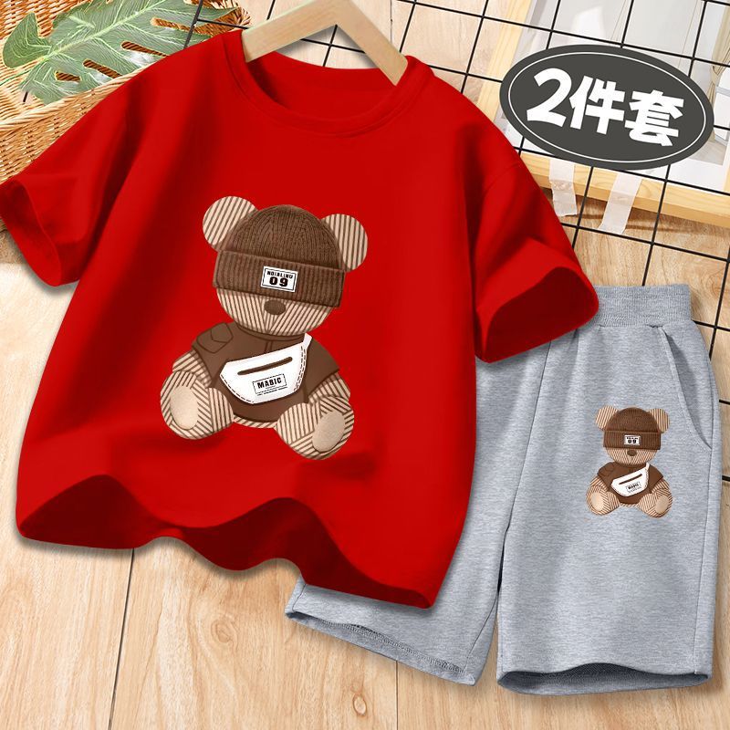 젤라 타이거 보이즈 얇은 통기성 세트 여름 새로운면 반팔 반바지 투피스 세트 클래스 A 폭발 유행스토어 가기